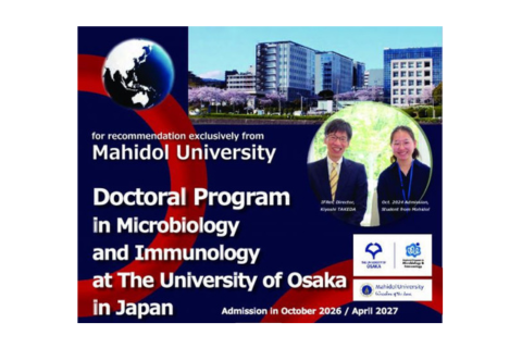 ทุนการศึกษาระดับปริญญาเอก Doctoral Program in Microbiology and Immunology ณ Graduate School of Medicine, The University of Osaka ประเทศญี่ปุ่น