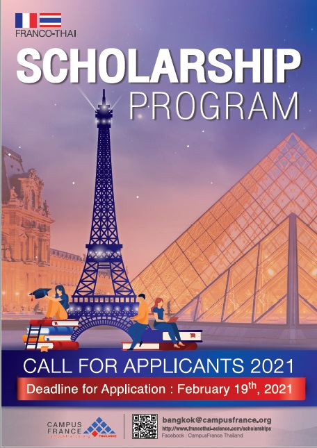 Scholarship laureates will be contacted individually. The final result will be published online on the Franco-Thai Scholarship Program website: http://www.francothai-science.com/scholarships by July 2021