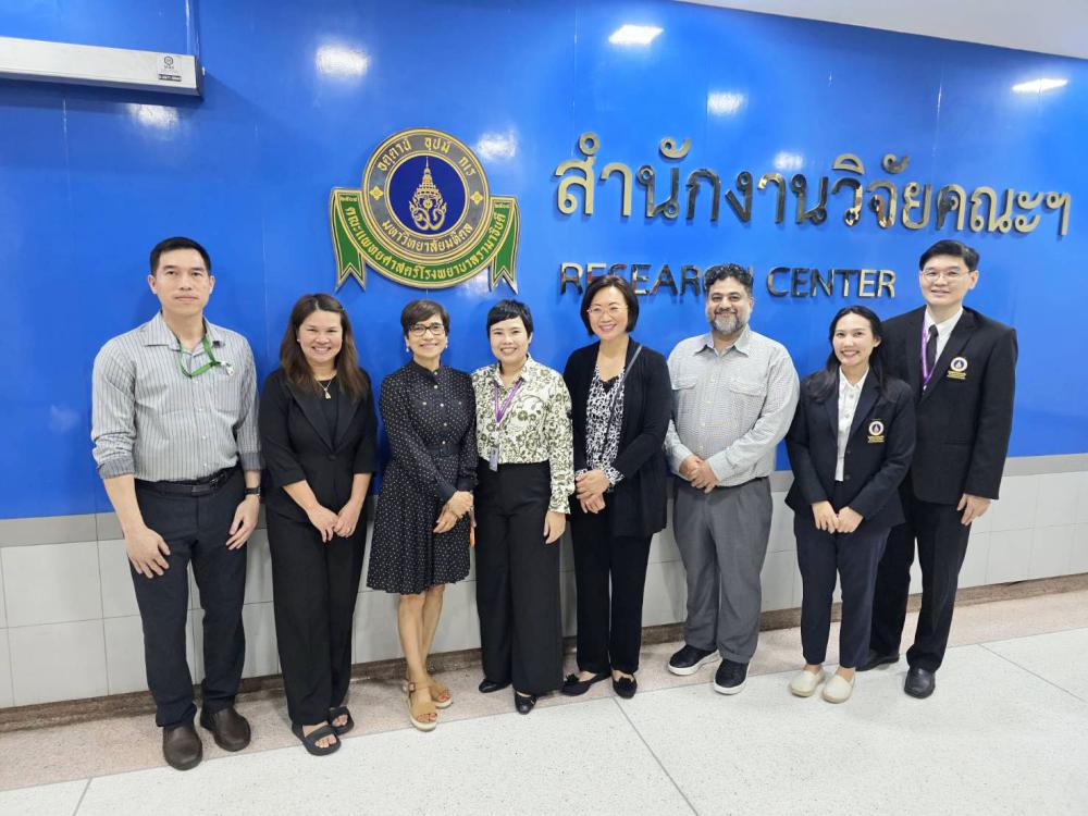The meeting was led by Asst. Prof. Suchin Worawichawong, M.D., Deputy Dean for International Relations, together with Assoc. Prof. Siriorn Watcharananan, M.D. and Assoc. Prof. Sirin Apiyasawat, M.D., Assistant Deans for International Relations. Other Ramathibodi representatives included Asst. Prof. Pirada Witoonpanich, M.D. and Asst. Prof. Thitiya Dejthevaporn, M.D. from the Department of Internal Medicine; Assoc. Prof. Nopporn Apiwattanakul, M.D., Assoc. Prof. Sophida Boonsathorn, M.D., and Assoc. Prof. Wiparat Manuyakorn, M.D. from the Department of Pediatrics; and Asst. Prof. Vijj Kasemsup, M.D., Head of the Department of Community Medicine.