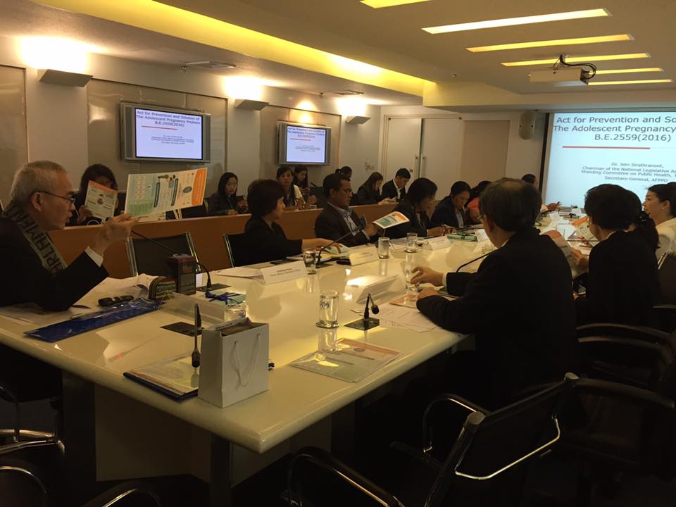 On this occasion, Hon.Dr.Jetn Sirathranont, MP, Secretary – General of The Asian Forum of Parliamentarians on Population and Development (AFPPD) kindly provided the special lecture on Act for Prevention and Solution of The Adolescent Pregnancy Problem B.E.2559 (2016), following with special lecture about Youth Friendly Health Services by Dr.Kittipong Saejeng, Director of Bureau of Reproductive Health. Then Dr. Wassana Im-Em, Assistant Representative, The United Nations Population Fund (UNFPA) Thailand Country Office kindly gave an interesting comment respectively.