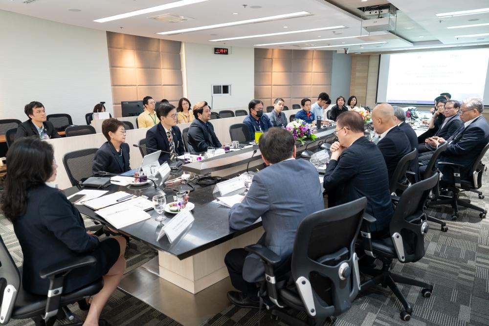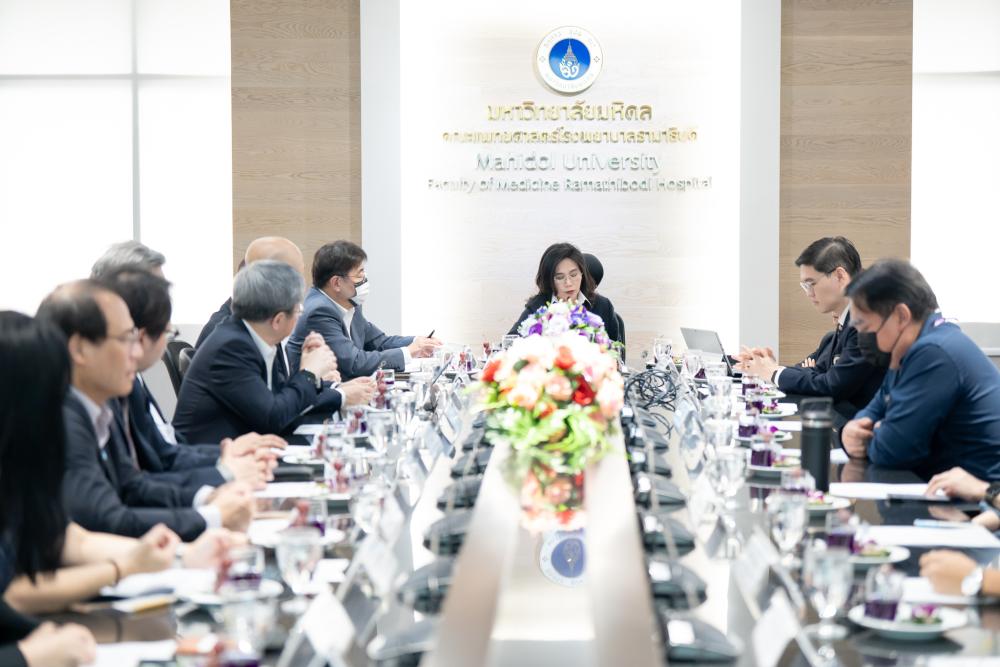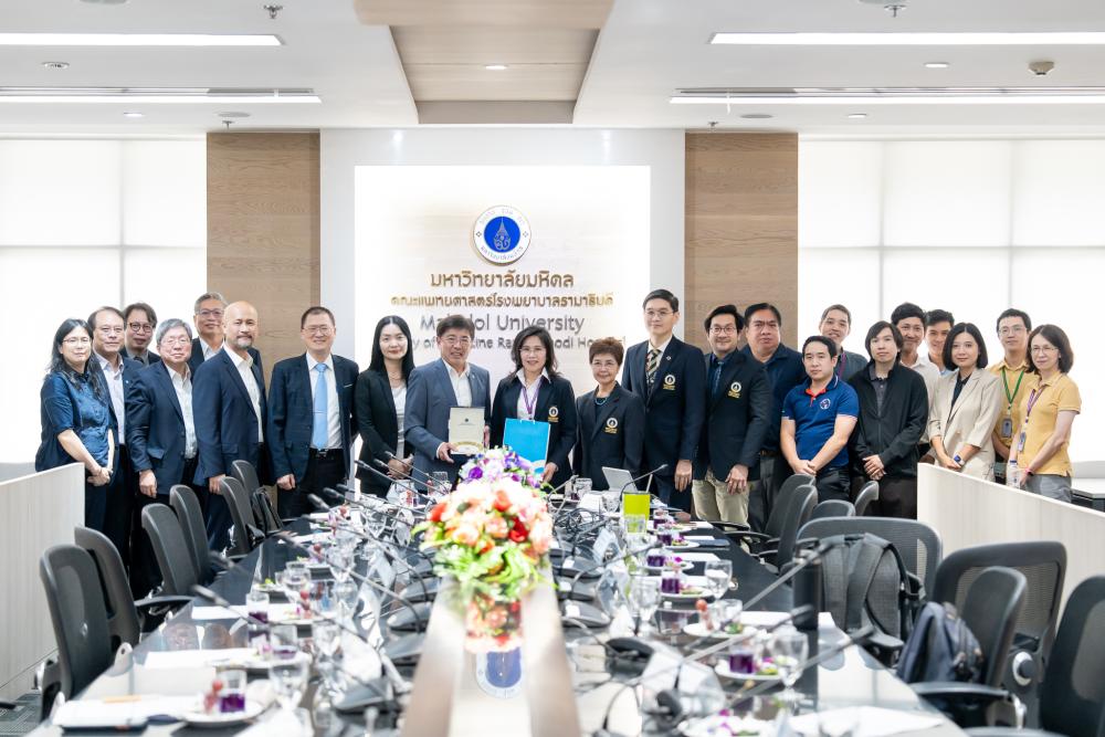 On July 14, 2025, at the Meeting Room no.1 of the Office of the Dean, 5th Floor, Administrative Building, the Faculty of Medicine Ramathibodi Hospital, Mahidol University, Prof. Atiporn Ingsathit, M.D., Ph.D., Director of Ramathibodi Hospital, along with including Asst. Prof. Suchin Worawichawong, M.D., Deputy Dean for International Relations; Prof. Ammarin Thakkinstian, Ph.D., Head of the Department of Clinical Epidemiology and Biostatistics as well as further Ramathibodi’s executives, joined together to provide a warm welcome for the delegation from the Industrial Technology Research Institute (ITRI), Taiwan, led by Dr. Edwin Liu, its President, during their official visit to Ramathibodi Hospital.