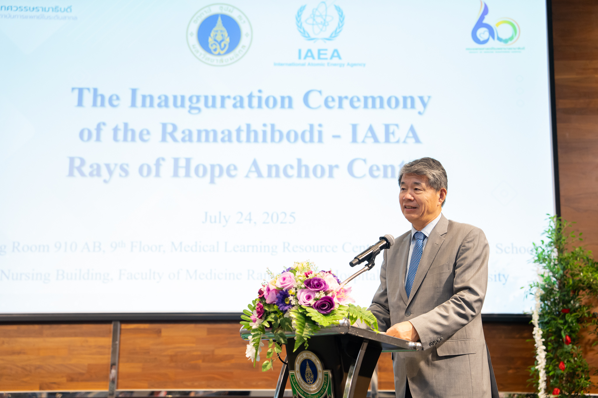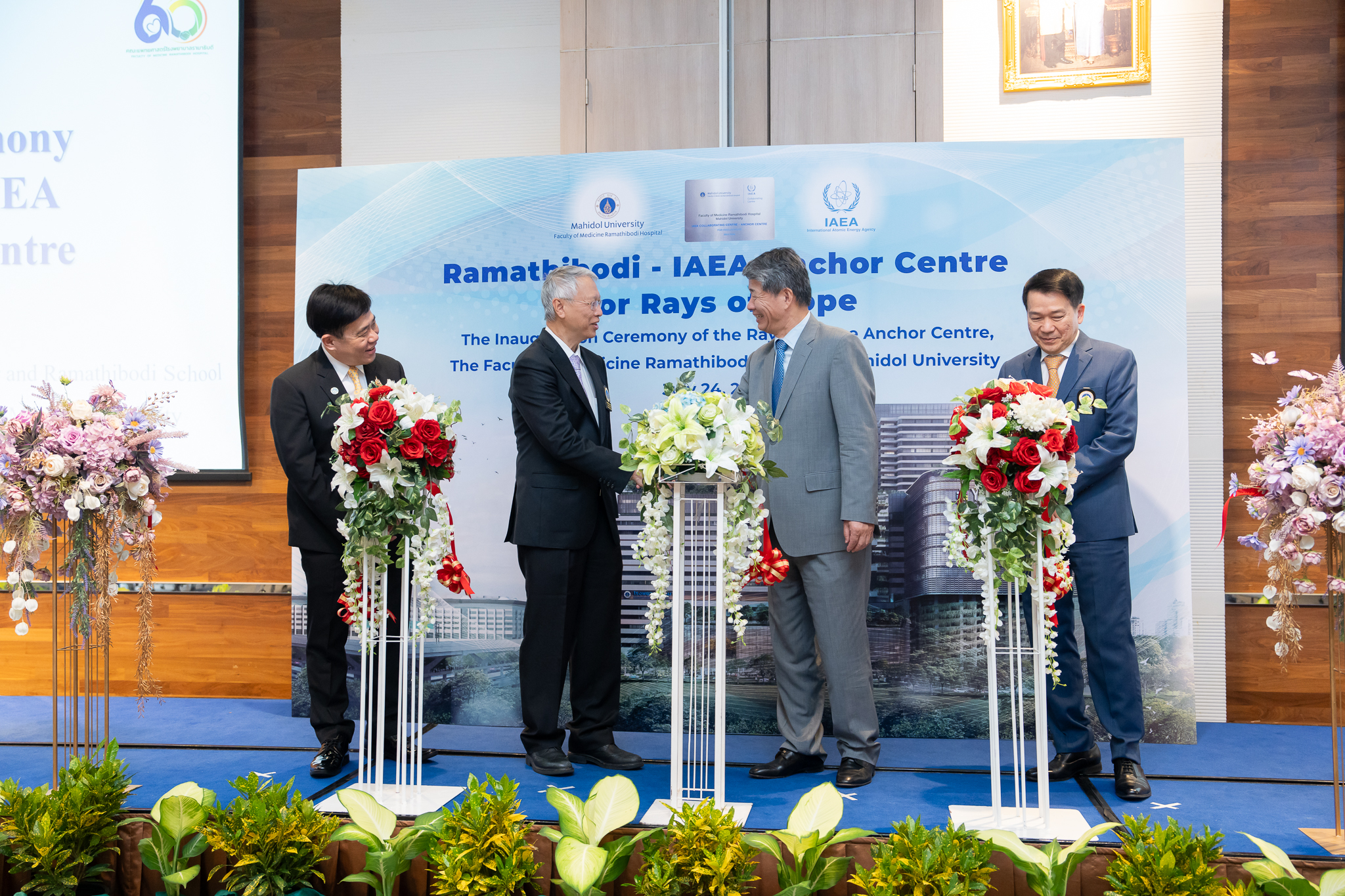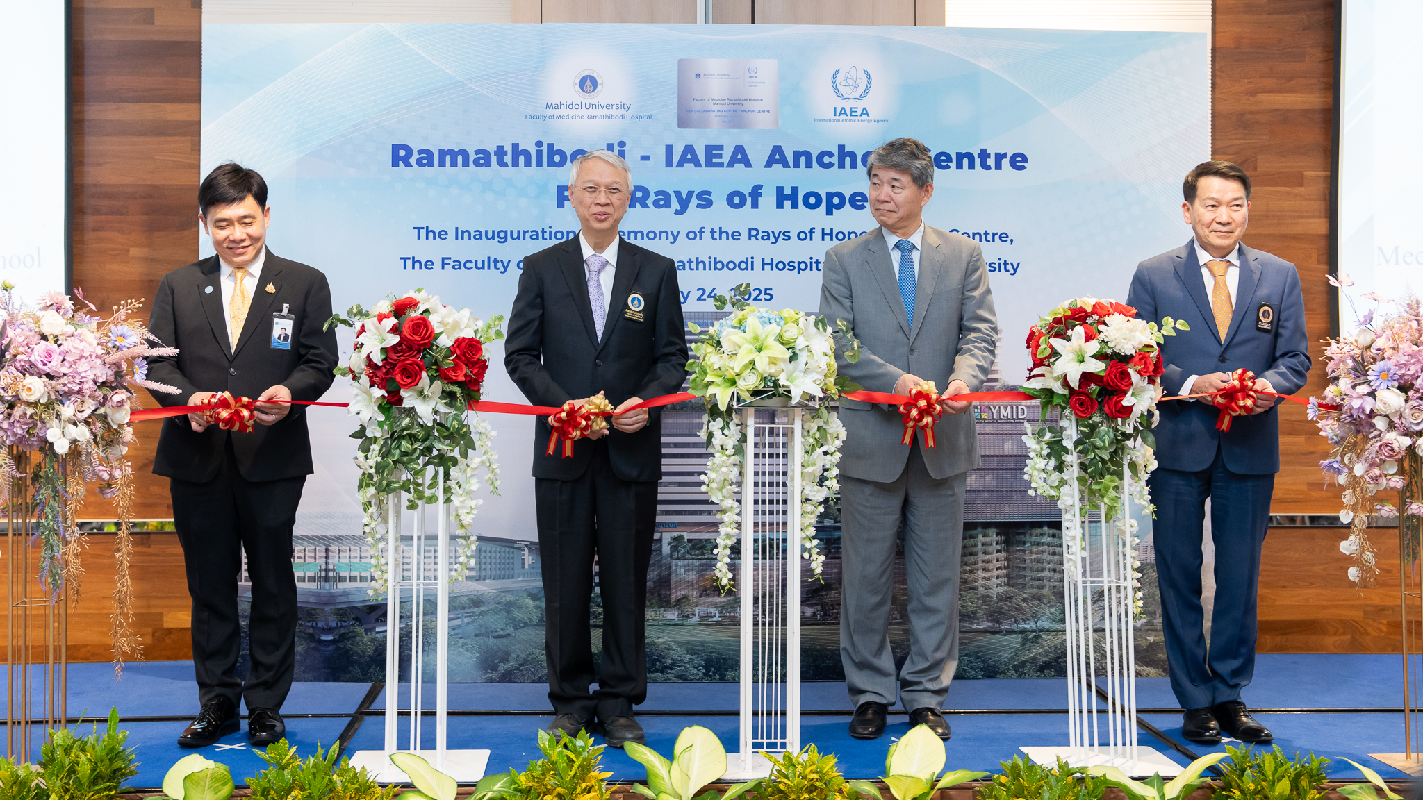 On July 24, 2025, at the Meeting Room 910AB, 9th floor, Medical Learning Resource Center and Ramathibodi School of Nursing Building of the Faculty of Medicine Ramathibodi Hospital, Mahidol University, Ramathibodi held the inauguration ceremony for the Rays of Hope Anchor Centre, Ramathibodi Hospital which was co-chaired by Clinical Professor Artit Ungkanont, M.D., Dean, and Mr. Hua Liu, Deputy Director General of the International Atomic Energy Agency (IAEA). The event was also graced by Professor Piyamitr Sritara, President of Mahidol University, and Dr. Roongruang Kitpati, Director General of the Department of Science Service, who is currently serving as Acting Secretary-General of the Office of Atoms for Peace (OAP), representing the Permanent Secretary of the Ministry of Higher Education, Science, Research and Innovation (MHESI).