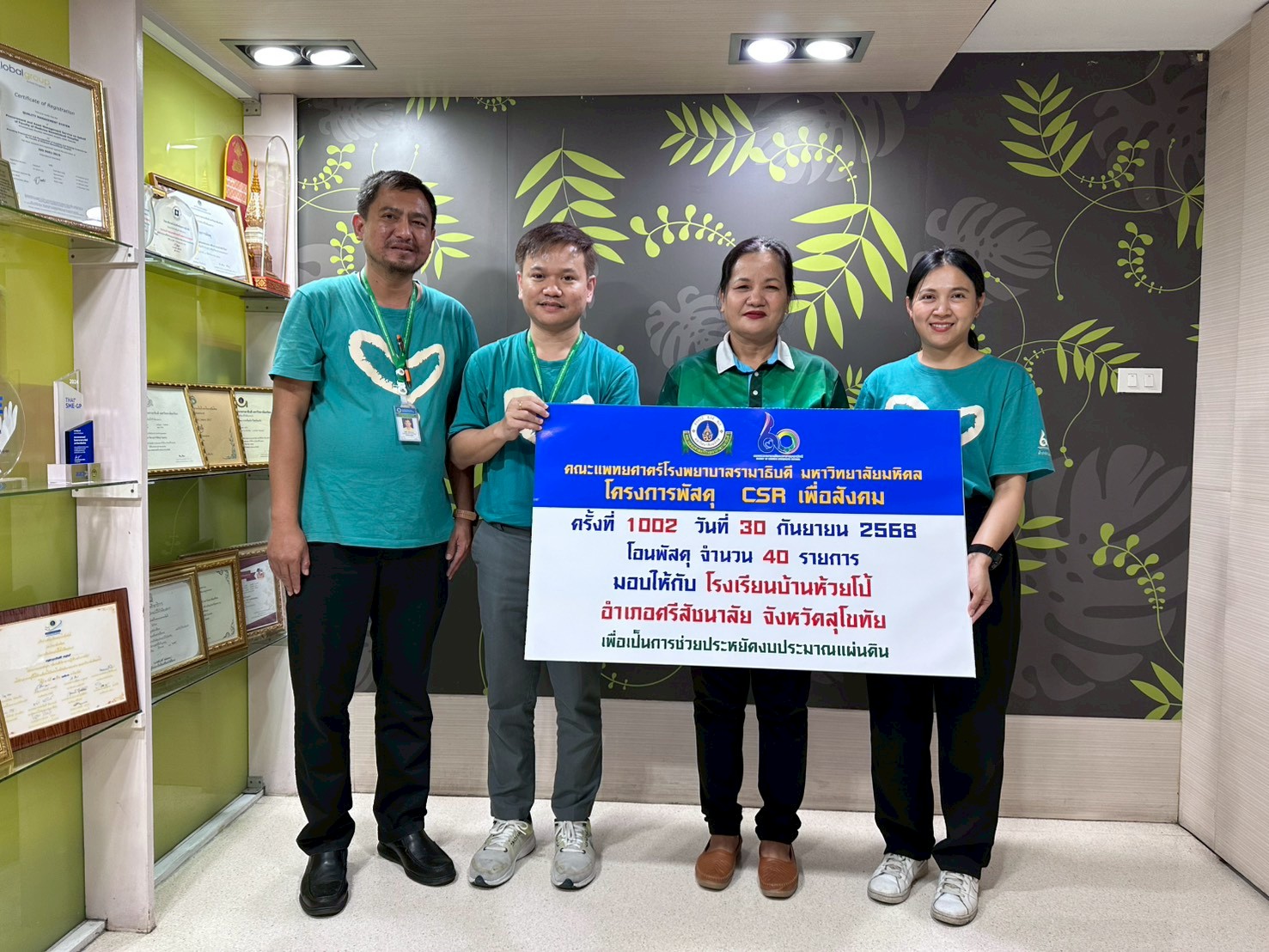 โครงการพัสดุ CSR ครั้งที่ 1002 โอนพัสดุ จำนวน 40 รายการ มอบให้กับ โรงเรียนบ้านห้วยโป้ อำเภอศรีสัชนาลัย จังหวัดสุโขทัย ในวันที่ 30 กันยายน 2568 เวลา 9.00 น