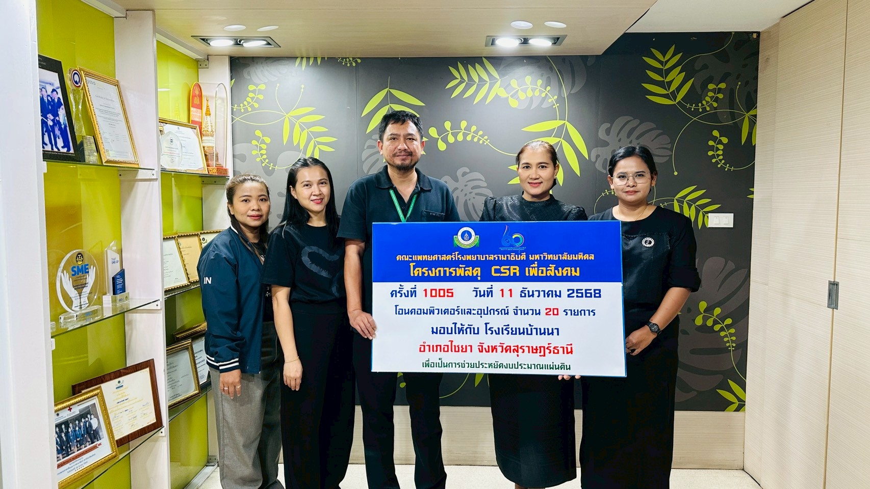 โครงการพัสดุ CSR ครั้งที่ 1005 โอนคอมพิวเตอร์และอุปกรณ์ จำนวน 20 รายการ มอบให้กับ โรงเรียนบ้านนา อำเภอไชยา จังหวัดสุราษฎร์ธานี ในวันที่ 11 ธันวาคม 2568 เวลา 9.00 น