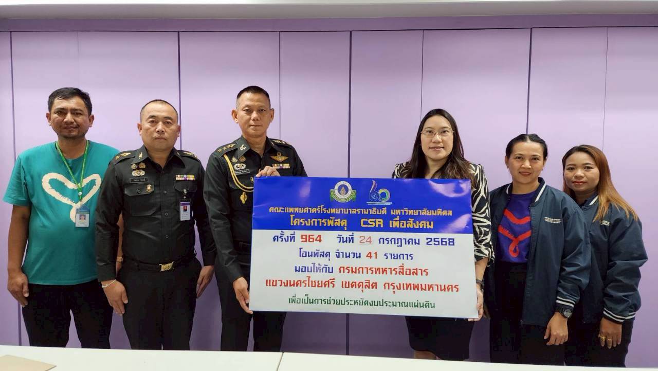 โครงการพัสดุ CSR ครั้งที่ 964 โอนพัสดุ จำนวน 41 รายการ มอบให้กับ กรมการทหารสื่อสาร แขวงนครไชยศรี เขตดุสิต กรุงเทพมหานคร ในวันที่ 23 กรกฎาคม 2568 เวลา 10.00 น.