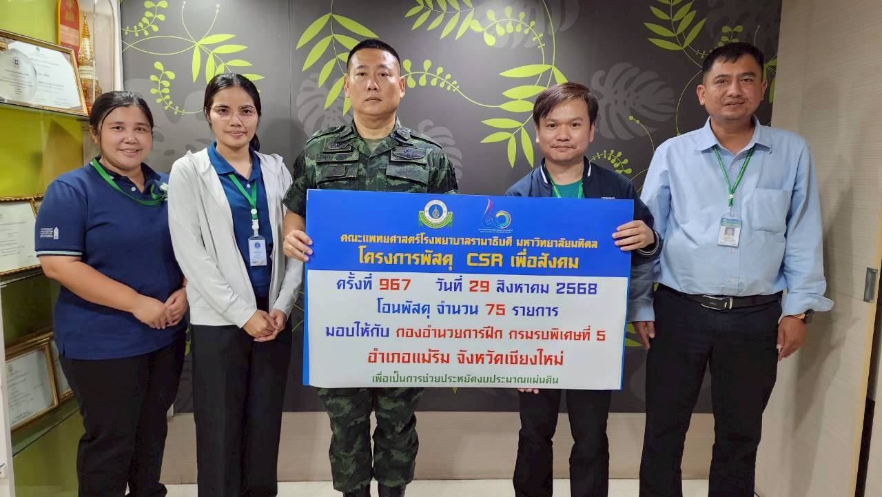 โครงการพัสดุ CSR ครั้งที่ 967 โอนพัสดุ จำนวน 75 รายการ มอบให้กับ กองอำนวยการฝึก กรมรบพิเศษที่ 5 อำเภอแม่ริม จังหวัดเชียงใหม่ ในวันที่ 29 สิงหาคม 2568 เวลา 13.00 น.