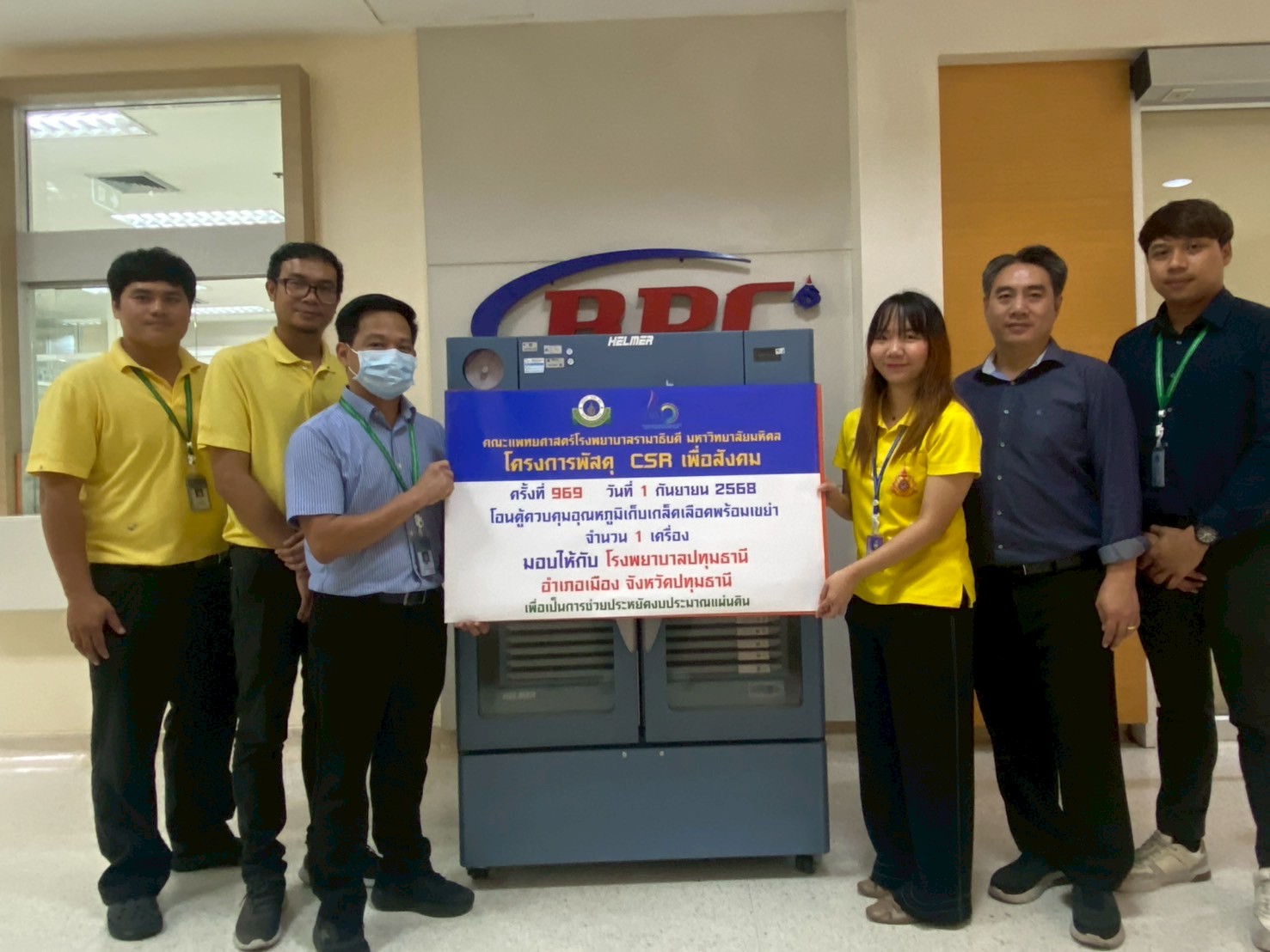 โครงการพัสดุ CSR ครั้งที่ 969 โอน ตู้ควบคุมอุณหภูมิเก็บเกร็ดเลือดพร้อมเขย่า จำนวน 1 เครื่อง มอบให้กับ โรงพยาบาลปทุมธานี อำเภอเมือง จังหวัดปทุมธานี ในวันที่ 1 กันยายน 2568 เวลา 13.30 น.