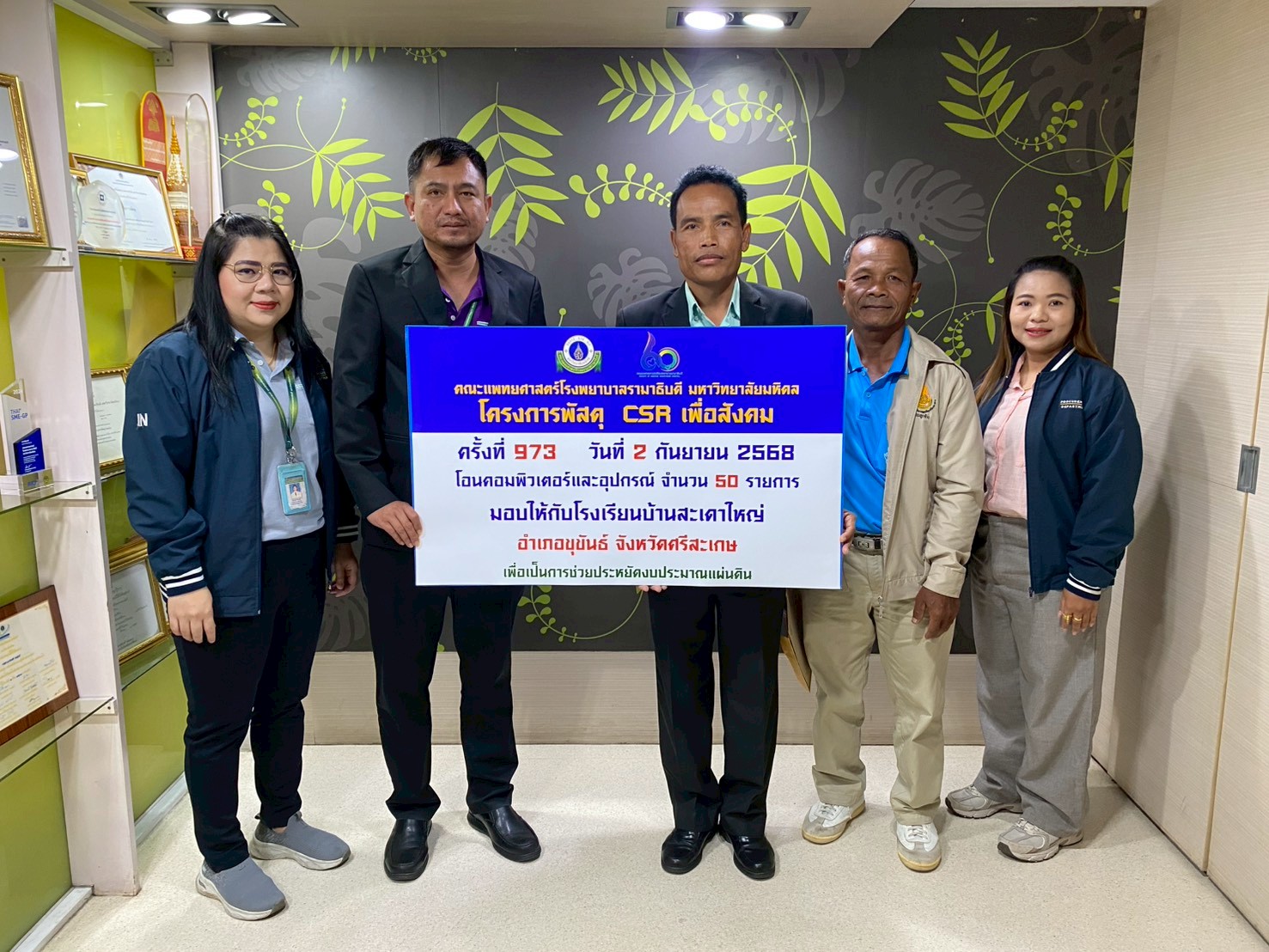 โครงการพัสดุ CSR ครั้งที่ 973 โอนคอมพิวเตอร์และอุปกรณ์ จำนวน 50 รายการ มอบให้กับ โรงเรียนบ้านสะเดาใหญ่ อำเภอขุขันธ์ จังหวัดศรีสะเกษ ในวันที่ 2 กันยายน 2568 เวลา 10.00 น