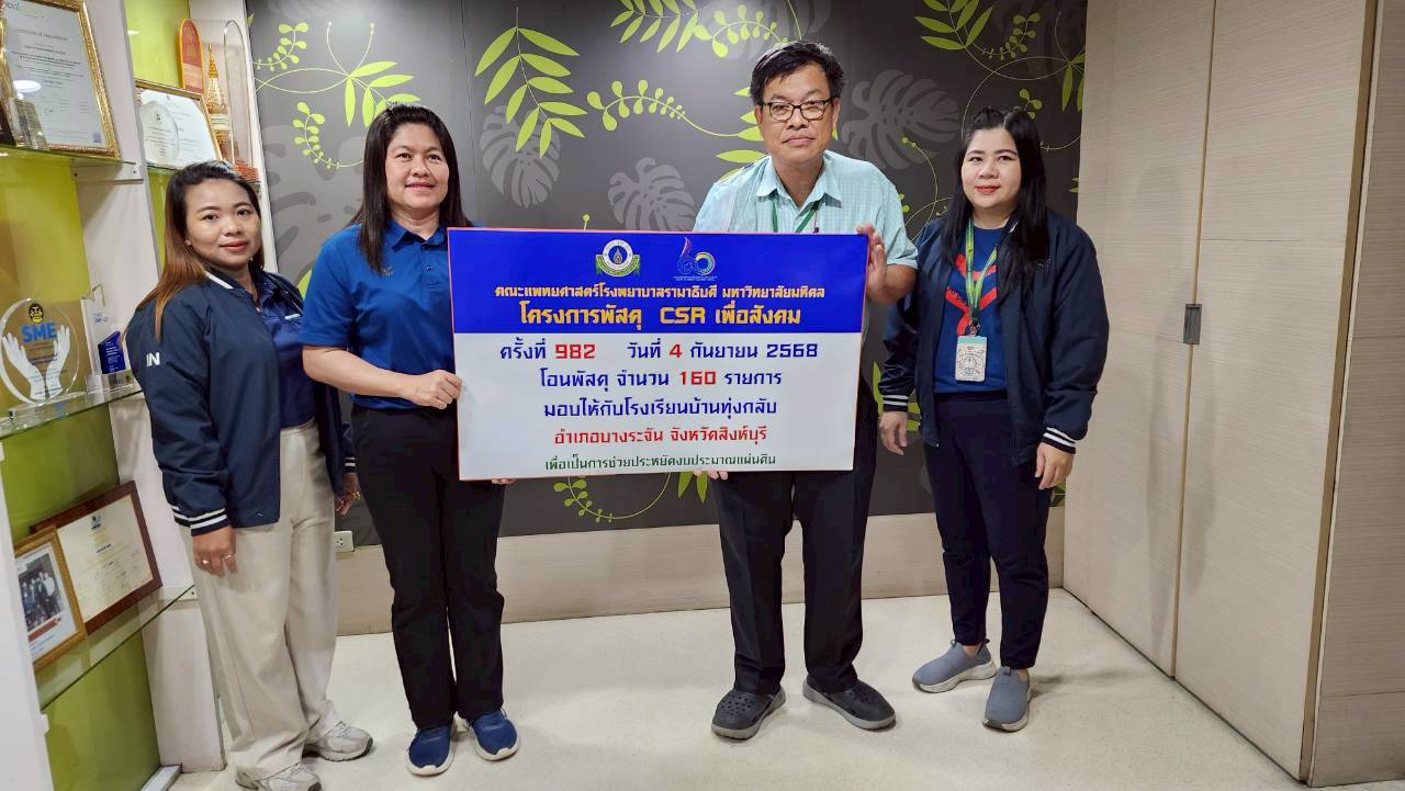 โครงการพัสดุ CSR ครั้งที่ 982 โอนพัสดุ จำนวน 160 รายการ มอบให้กับ โรงเรียนบ้านทุ่งกลับ อำเภอบางระจัน จังหวัดสิงห์บุรี ในวันที่ 4 กันยายน 2568 เวลา 10.00 น