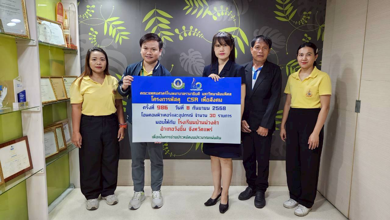 โครงการพัสดุ CSR ครั้งที่ 986 โอนคอมพิวเตอร์และอุปกรณ์ จำนวน 30 รายการ มอบให้กับ โรงเรียนบ้านม่วงคำ อำเภอวังชิ้น จังหวัดแพร่ ในวันที่ 8 กันยายน 2568 เวลา 9.00 น