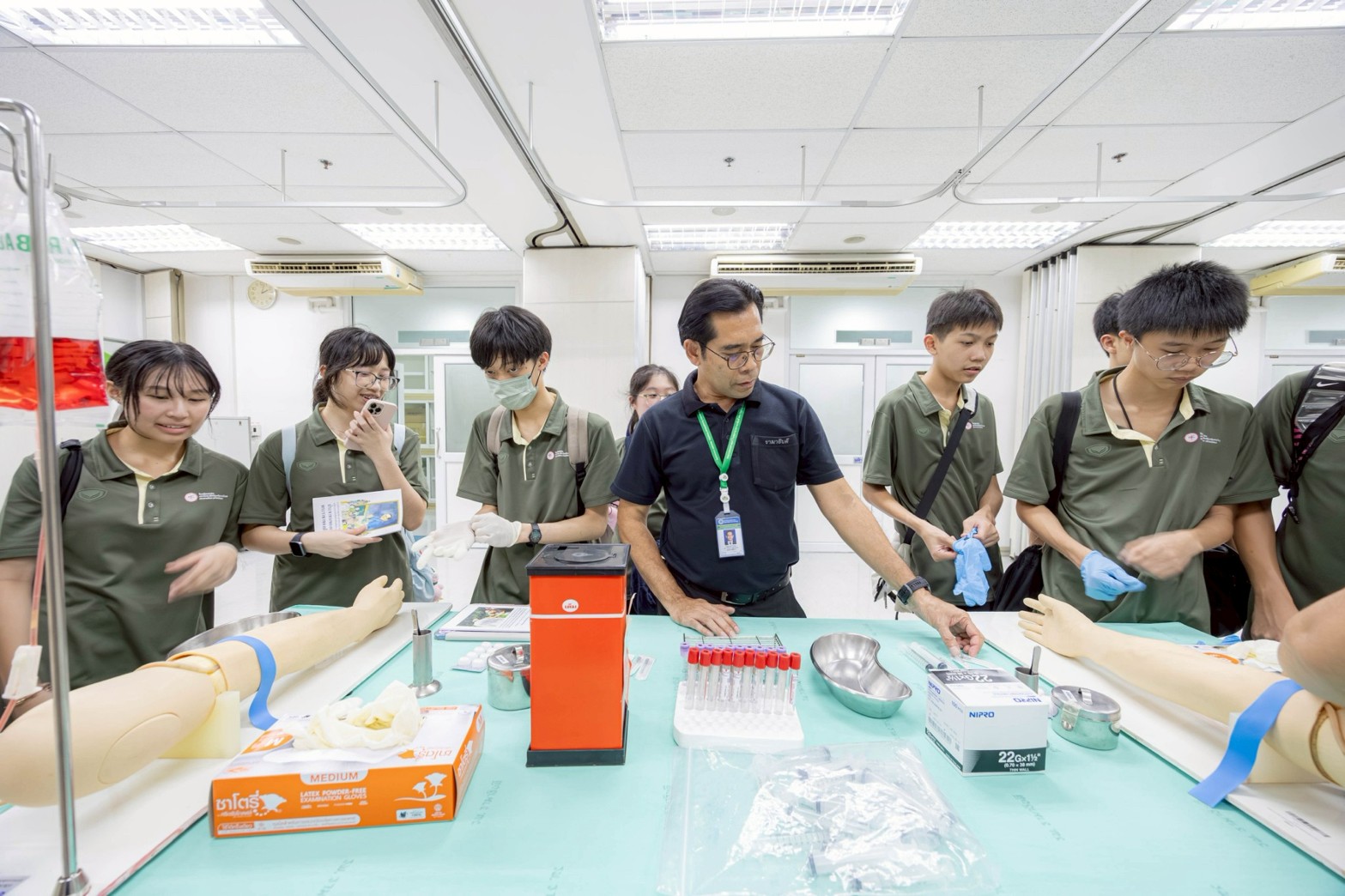 เมื่อวันจันทร์ที่ 10 พฤศจิกายน 2568 คณะครูและนักเรียนระดับชั้นมัธยมศึกษาปีที่ 5 จาก โรงเรียนสาธิตมหาวิทยาลัยศรีนครินทรวิโรฒ ประสานมิตร และผู้ดูแล “สิรินธรทันตพิพิธ” ได้เข้าเยี่ยมชมหอจดหมายเหตุและพิพิธภัณฑ์รามาธิบดี หน่วยห้องปฏิบัติการทักษะทางคลินิก งานบริหารทรัพยากรการเรียนรู้ คณะแพทยศาสตร์โรงพยาบาลรามาธิบดี มหาวิทยาลัยมหิดล (โครงการความร่วมมือพิพิธภัณฑ์ในเขตพื้นที่พญาไท) โดยมีคุณผจญ คงสบาย หัวหน้างานบริหารทรัพยากรการเรียน ให้การต้อนรับและเยี่ยมชมโดยมีกิจกรรมบรรยายความเป็นมาของคณะแพทยศาสตร์โรงพยาบาลรามาธิบดีและเข้าร่วมทำกิจกรรมฝึกปฏิบัติการทักษะทางคลินิก นักเรียนได้ร่วมฟังการบรรยายและได้ทดลองทำหัตถการต่างๆ ทำให้นักเรียนมีความรู้ความเข้าใจและข้อควรระวังเบื้องต้นในการทำหัตถการต่าง ๆ เช่น การให้สารน้ำ การเจาะเลือด เป็นต้น กิจกรรมในครั้งนี้ไม่เพียงช่วยเสริมสร้างความรู้ความเข้าใจ เท่านั้น แต่ยังเป็นการจุดประกายแรงบันดาลใจ ให้กับนักเรียนในการมองเห็นเส้นทางและเป้าหมายในอนาคตอีกด้วย