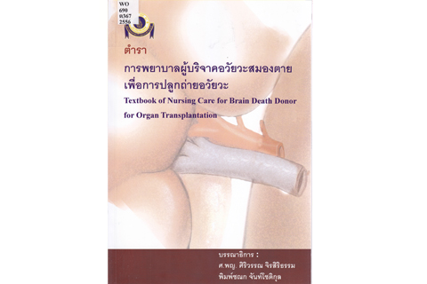 Title ตำราการพยาบาลผู้บริจาคอวัยวะสมองตายเพื่อการปลูกถ่ายอวัยวะ = Textbook of nursing care for brain death donor for organ transplantation Author ศิริวรรณ จิรสิริธรรม, พิมพ์ชณก จันนท์โชติกุล Call Number WO690 ต367 2556 Contents
