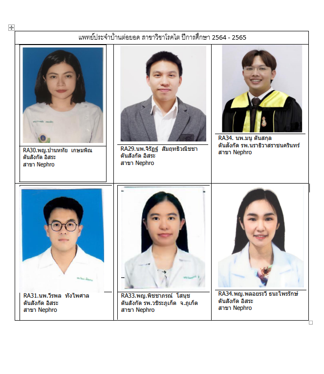 แพทย์ประจำบ้านต่อยอด สาขาวิชาโรคไต ปีการศึกษา 2564 - 2565