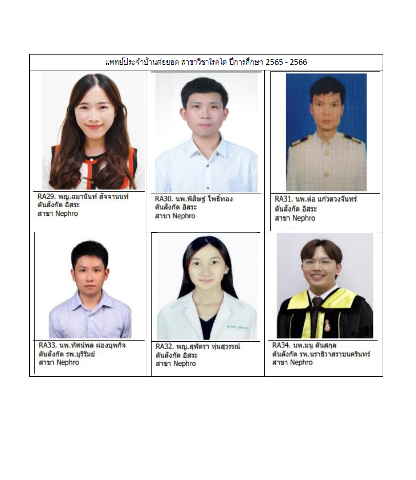 แพทย์ประจำบ้านต่อยอด สาขาวิชาโรคไต ปีการศึกษา 2565 - 2566