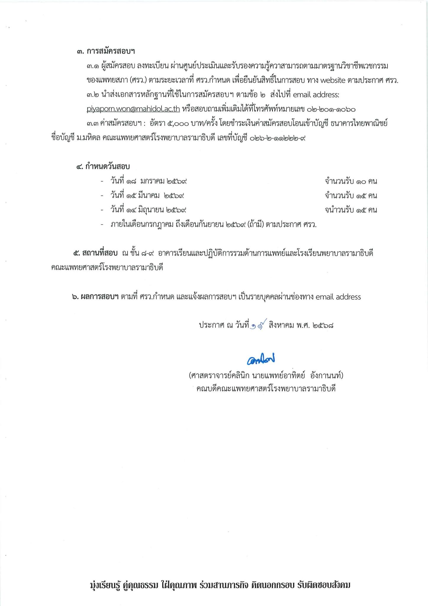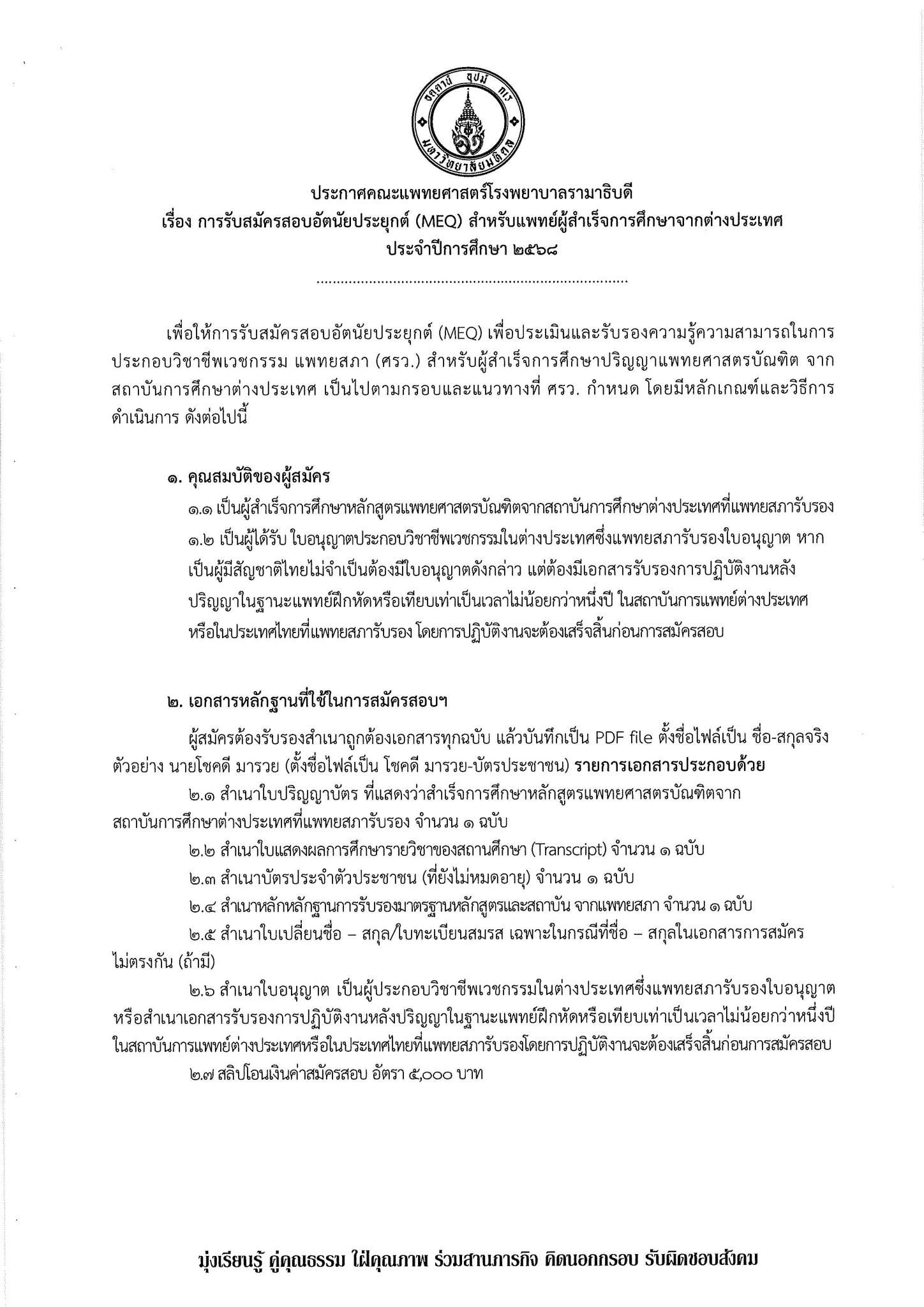 การรับสมัครสอบอัตนัยประยุกต์ (MEQ) สำหรับแพทย์ผู้สำเร็จการศึกษาจากต่างประเทศ ประจำปีการศึกษา 2568