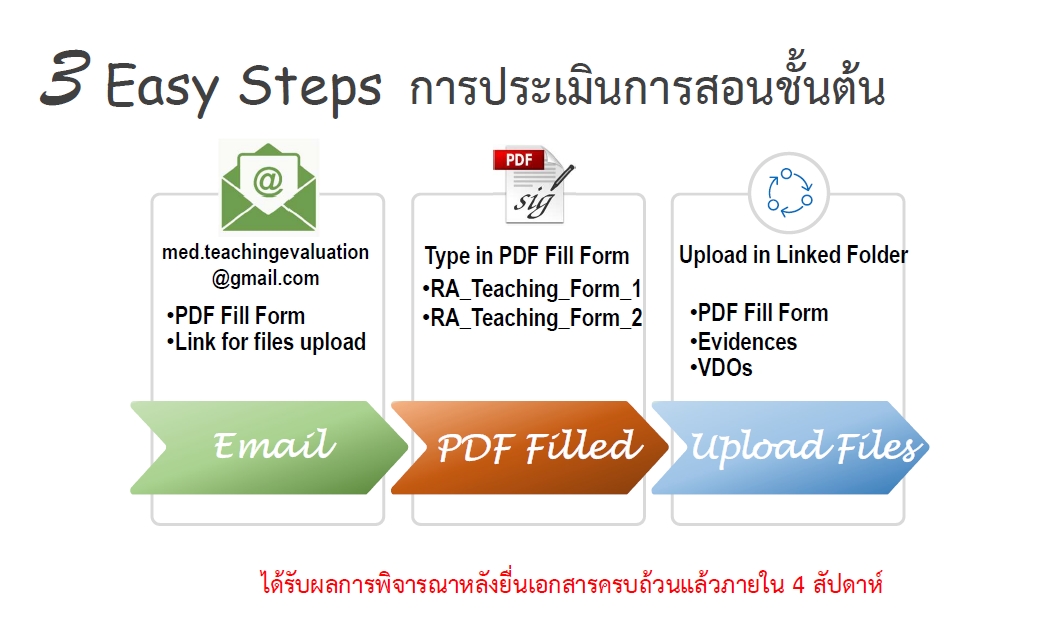 เป็น PDF fill form ซึ่งประกอบด้วย 2 ส่วนต่อกัน โดยส่วนแรกเป็นแบบฟอร์มขอรับการประเมิน (RA_Teaching_Form1 และ Form2) ผู้ขอรับการประเมินเป็นผู้กรอก และส่วนที่ 2 แบบประเมินผลโดยคณะอนุกรรมการประเมินการสอน