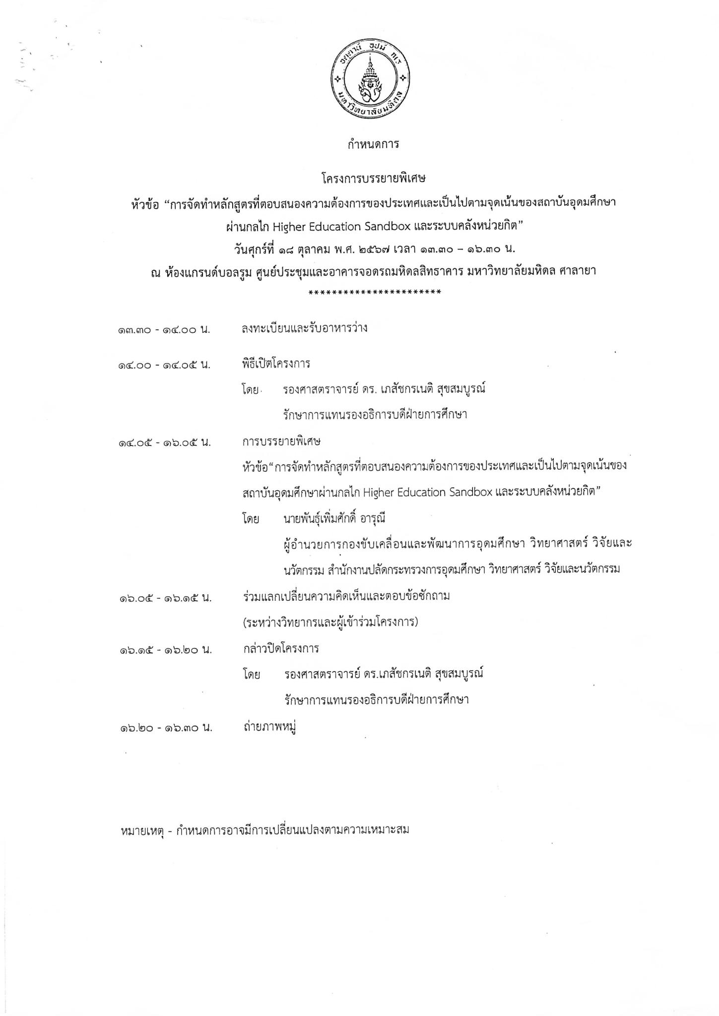 "การจัดทำหลักศุตรที่ตอบสนองความต้องการของประเทศและเป็นไปตามจุดเน้นของสถาบันอุดมศึกษาผ่านกลไก Higher Education Sandbox และระบบคลังหน่วยกิต"