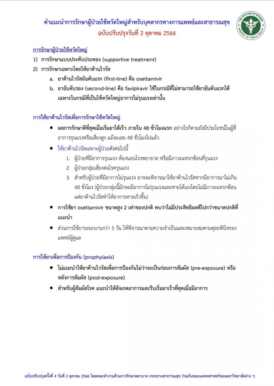 ทั้งนี้ การให้ยาต้านไวรัสเพื่อการรักษาไข้หวัดใหญ่ ควรเริ่มยาให้เร็วภายใน 48 ชั่วโมงแรก เพื่อผลการรักษาดีที่สุด