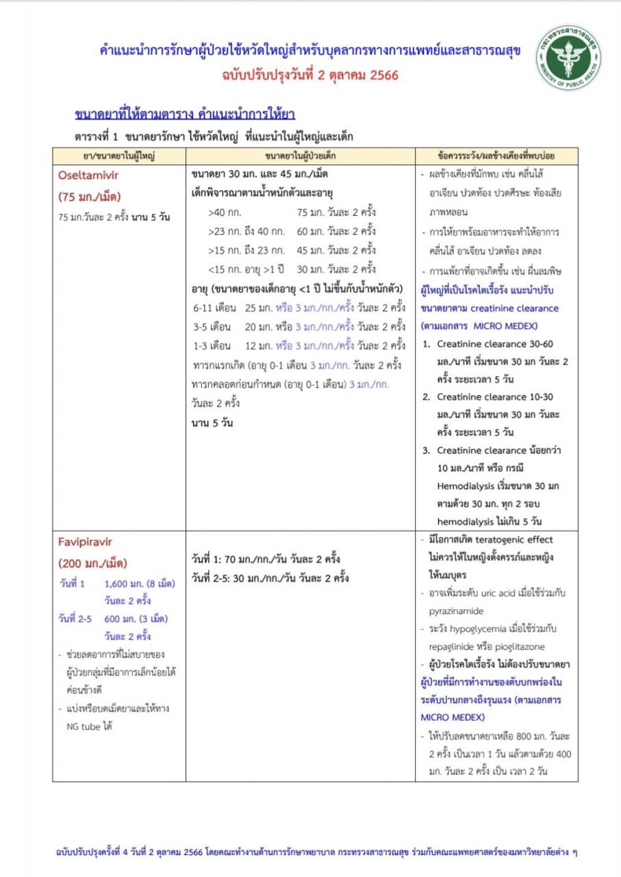 โดยให้ยาอันดับแรก คือ Oseltamivir ส่วนยาอันดับรอง คือ Favipiravir ใช้ในกรณีที่ไม่สามารถใช้ยาอันดับแรกได้ เฉพาะในกรณีที่เป็นไข้หวัดใหญ่อาการไม่รุนแรงเท่านั้น