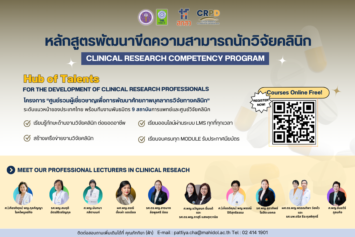 👩‍⚕️ ขอเชิญชวนผู้ที่สนใจเข้าร่วมหลักสูตร "พัฒนาขีดความสามารถนักวิจัยคลินิก"