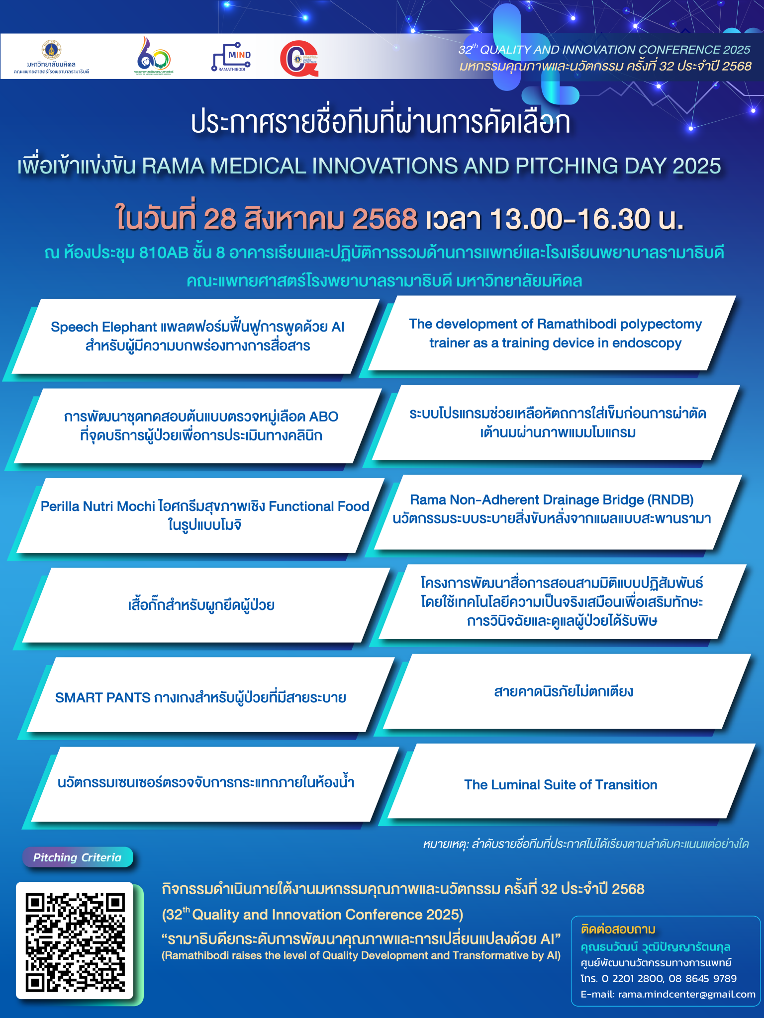 #RAMAInnovation #MedicalPitching2025 #MedicalInnovation #Ramathibodi