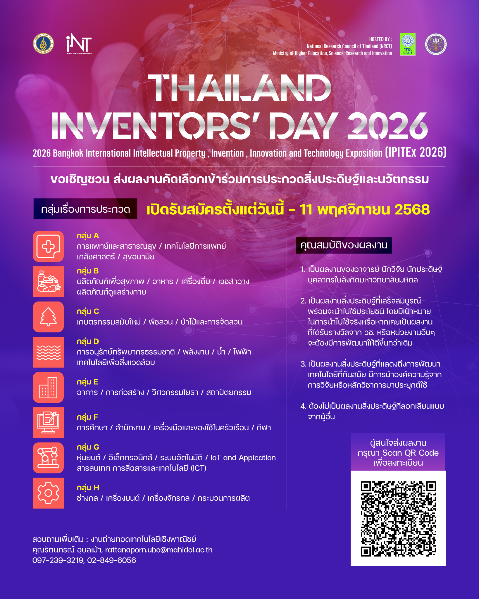 📢ประชาสัมพันธ์เชิญชวนส่งผลงานเข้าร่วมงาน “วันนักประดิษฐ์ 2569” (IPITEx 2026) 🌟