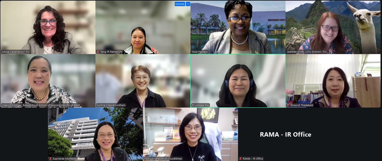 The administrators of Ramathibodi School of Nursing held an online meeting with the executive team from Florida International University, USA, via Zoom.