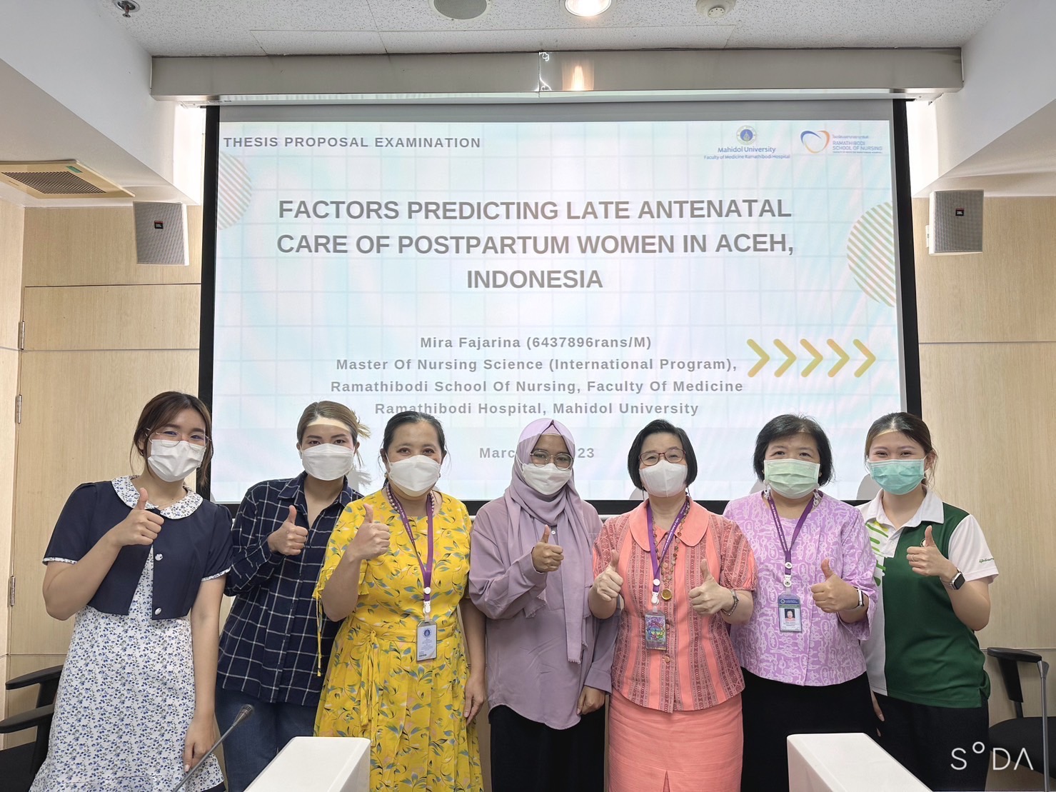 Congratulations to Ms. Mira Fajarina on passing her Thesis proposal examination for Master of Nursing Science Program (International Program), Ramathibodi School of Nursing, Faculty of Medicine Ramathibodi Hospital, Mahidol University on March 2, 2023.