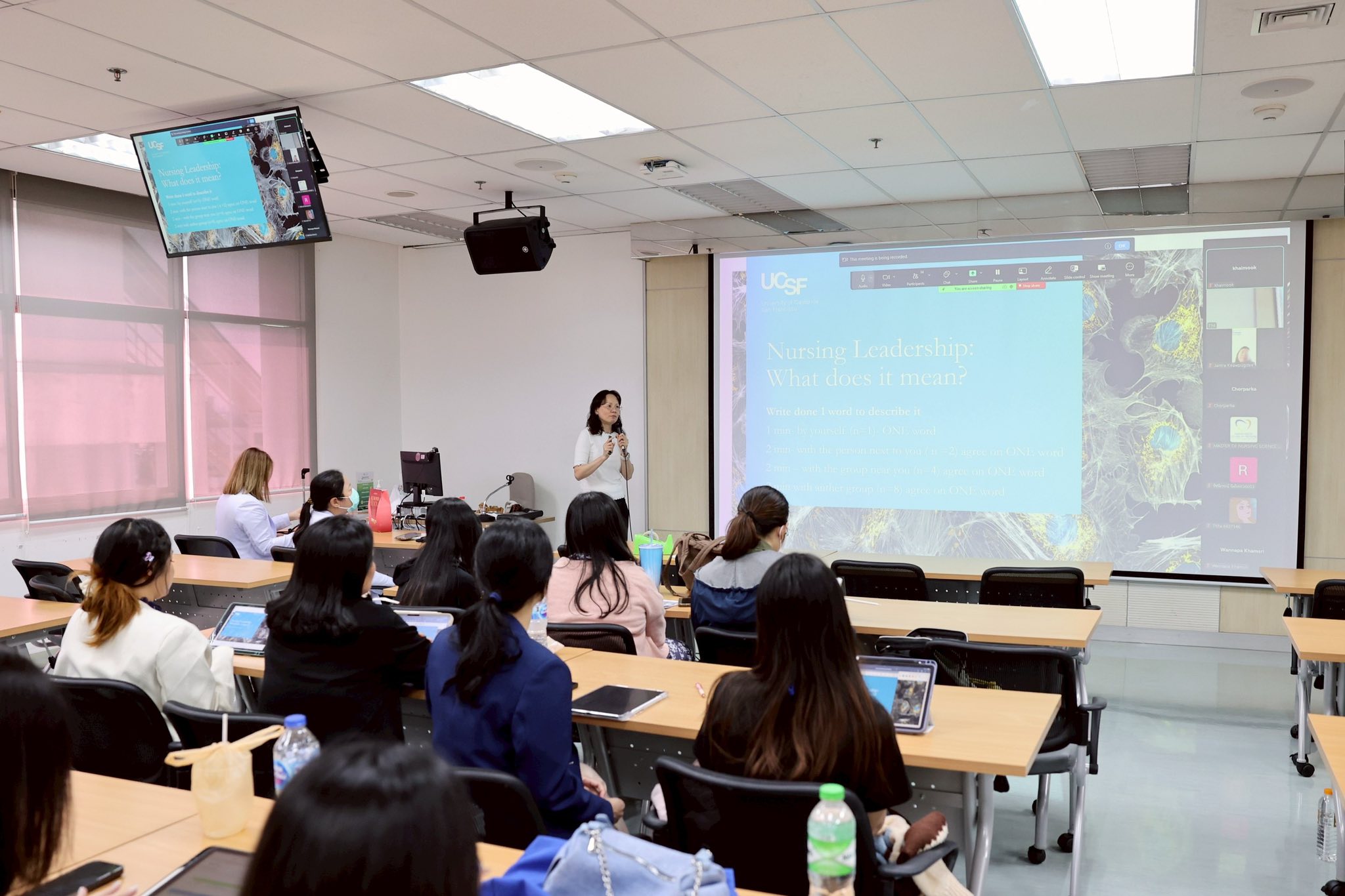 First-year students of the Master of Nursing Science Program at Ramathibodi School of Nursing attended a special lecture titled “The relationship between leadership and policy development and implementation” delivered by a faculty member from the University of California San Francisco (UCSF), USA.