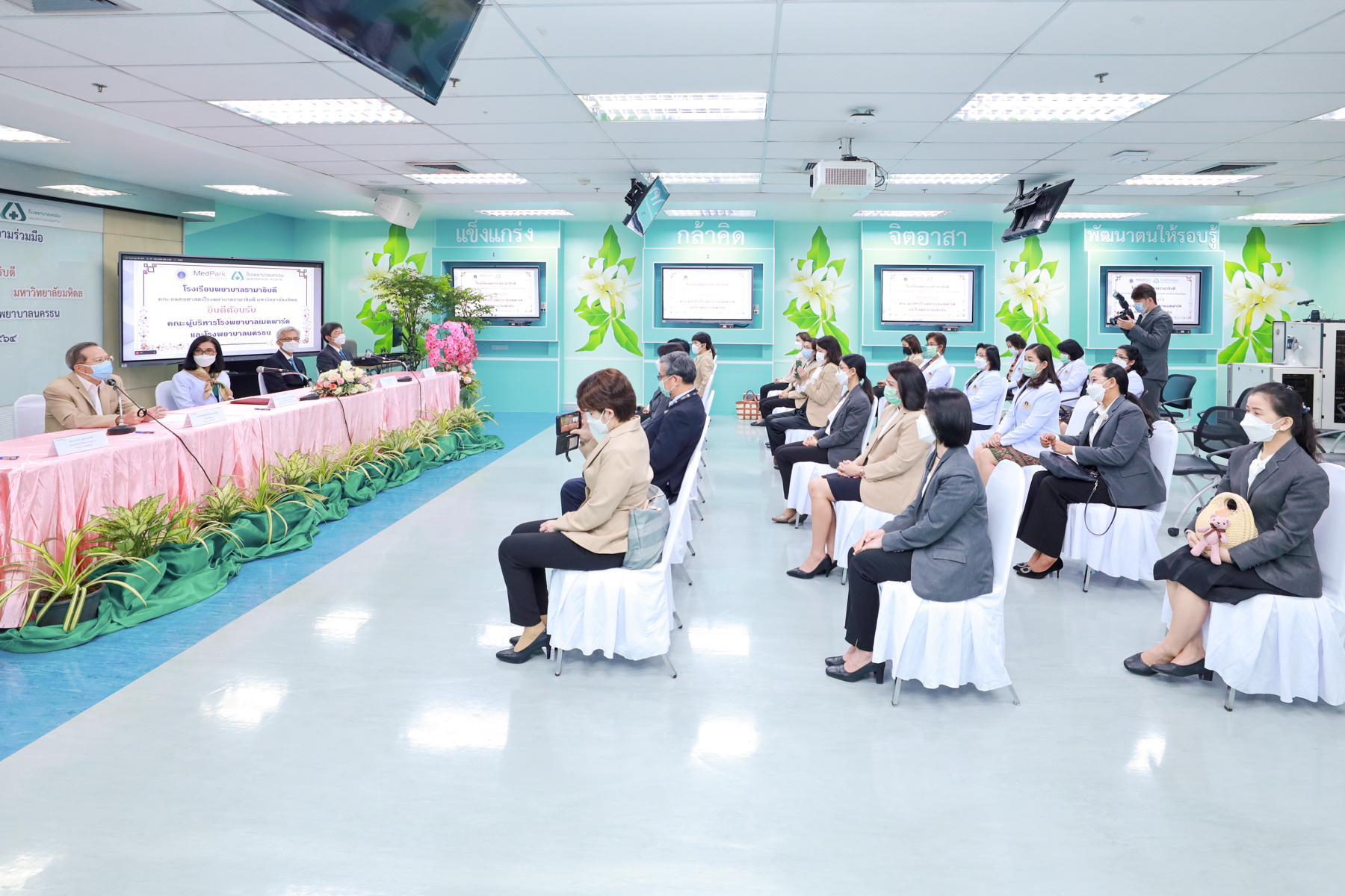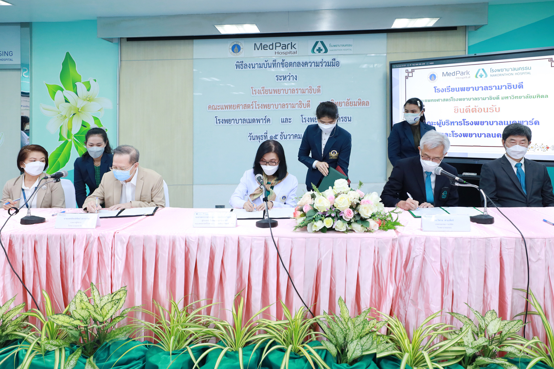 On December 15, 2021 in room 611, of the Medical Learning Resource Center at Ramathibodi School of Nursing Building, Faculty of Medicine Ramathibodi Hospital, Mahidol University. The Memorandum of Understanding (MOU) between Ramathibodi School of Nursing, Faculty of Medicine Ramathibodi Hospital, Mahidol University and the prestigious private hospitals, MedPark Hospital and Nakornthon Hospital, has been signed by Associate Professor Dr. Poolsuk Janepanish Visudtibhan (Director of Ramathibodi School of Nursing, Faculty of Medicine Ramathibodi Hospital, Mahidol University), Dr. Pongpat Patanavanich, (Managing Director, MedPark Hospital), and Dr. Wisan Saipetch, (Chief Executive Officer, Nakornthon Hospital). The aim of this collaboration is to create the "nurses of the future" who are able to deal with complex health problems, and to promote a better health care system. In particular, equal health care access, as part of the sustainable development goals of the United Nations. |