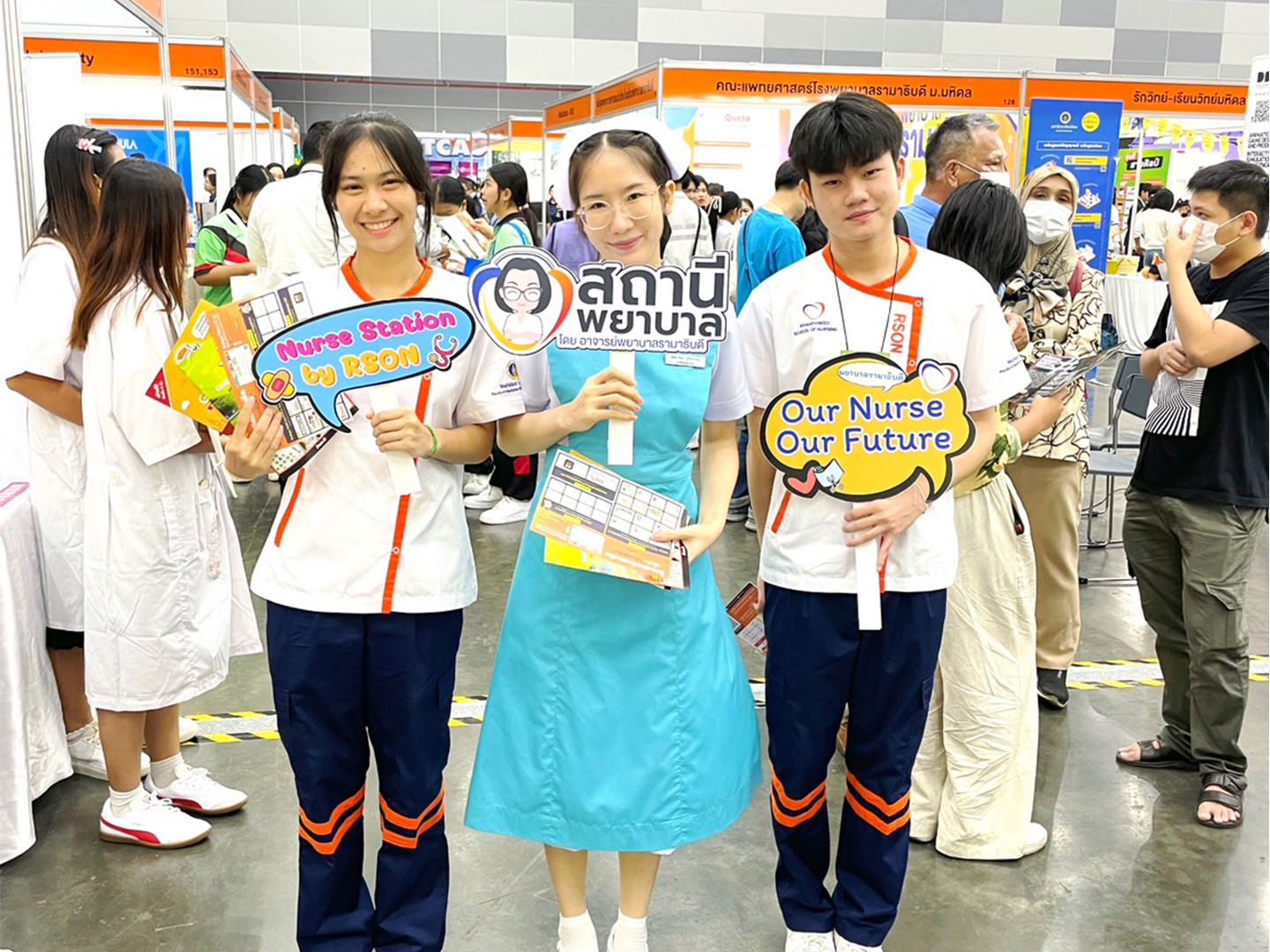 At the fair, parents, student counselors, and high school students across the country were interested in asking for information, participating in activities, and playing games at the booth of Ramathibodi School of Nursing.