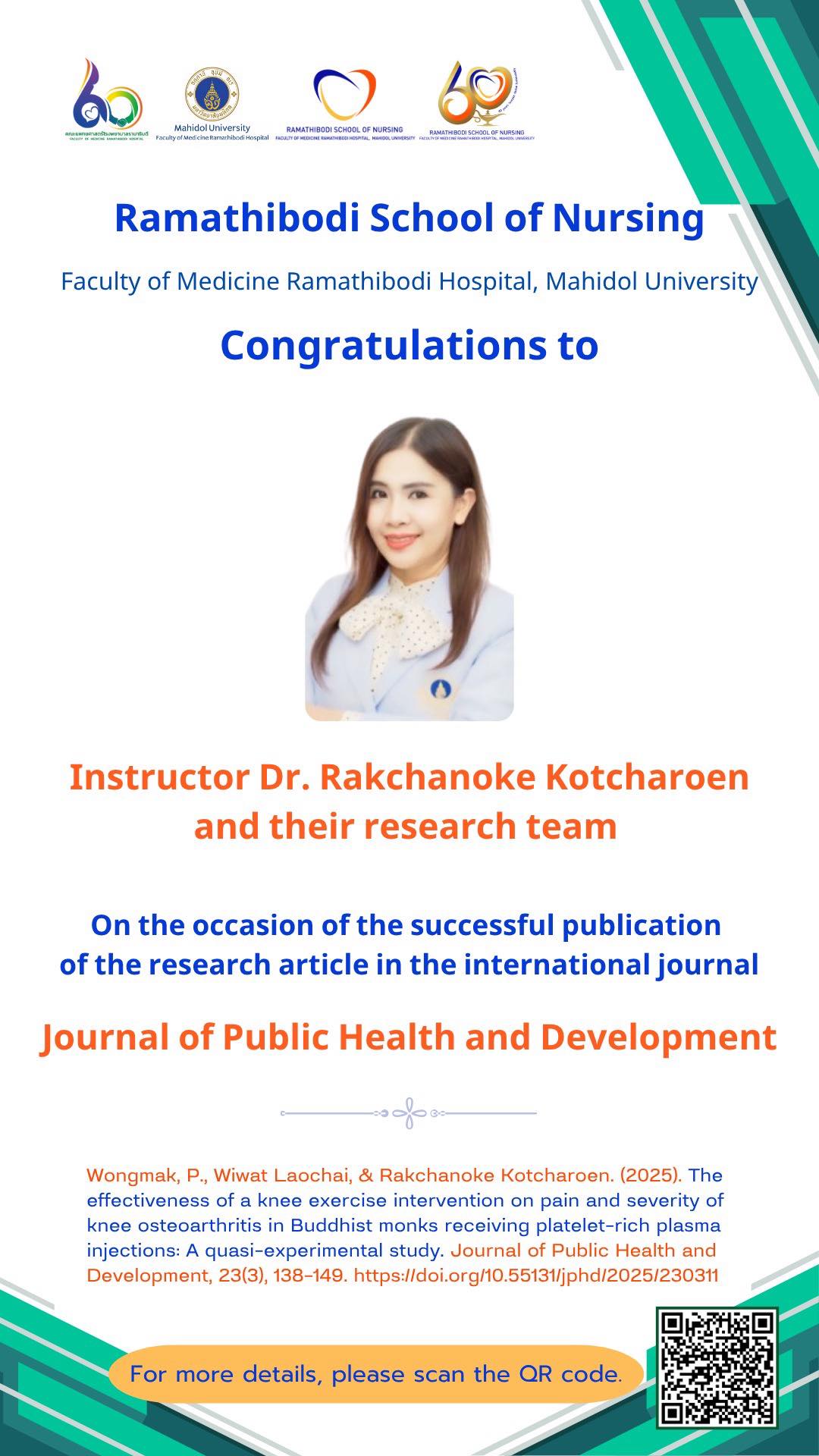 Congratulations to Instructor Dr. Rakchanoke Kotcharoen and their research team.