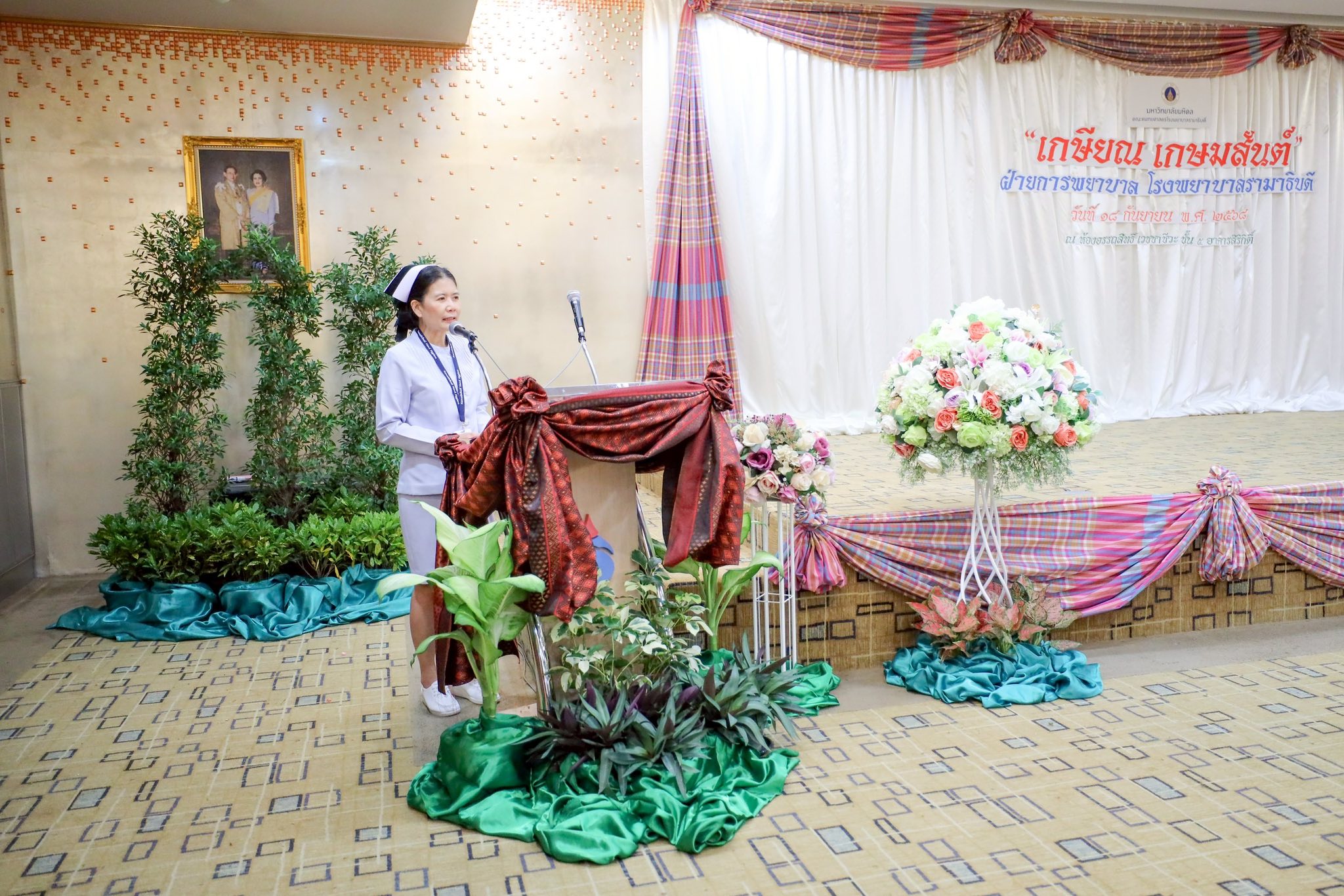 วันที่ 18 กันยายน 2568 รองศาสตราจารย์ ดร.สุชิรา ชัยวิบูลย์ธรรม รองผู้อำนวยการฯ ฝ่ายบริหาร ผู้แทนผู้อำนวยการโรงเรียนพยาบาลรามาธิบดี คณะแพทยศาสตร์โรงพยาบาลรามาธิบดี มหาวิทยาลัยมหิดล พร้อมด้วย คณะผู้บริหาร คณาจารย์ และบุคลากรโรงเรียนพยาบาลรามาธิบดี เข้าร่วมงานมุทิตาจิตผู้เกษียณอายุราชการ ประจำปี 2568 โดยมี การร่วมมอบของที่ระลึกแก่ผู้เกษียณอายุราชการและอายุงาน สังกัดฝ่ายการพยาบาล คณะแพทยศาสตร์โรงพยาบาลรามาธิบดี มหาวิทยาลัยมหิดล