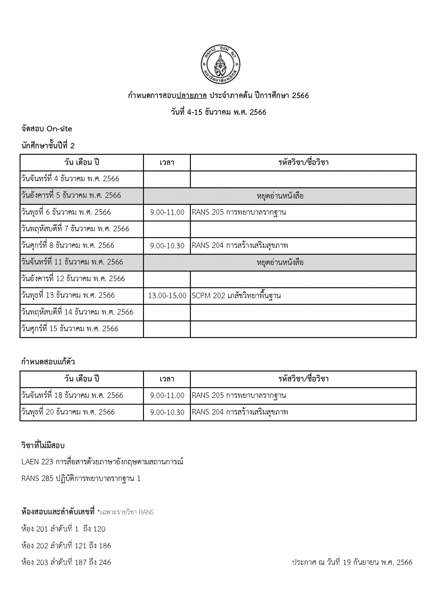 นักศึกษาชั้นปีที่ 2 (สอบปลายภาค)