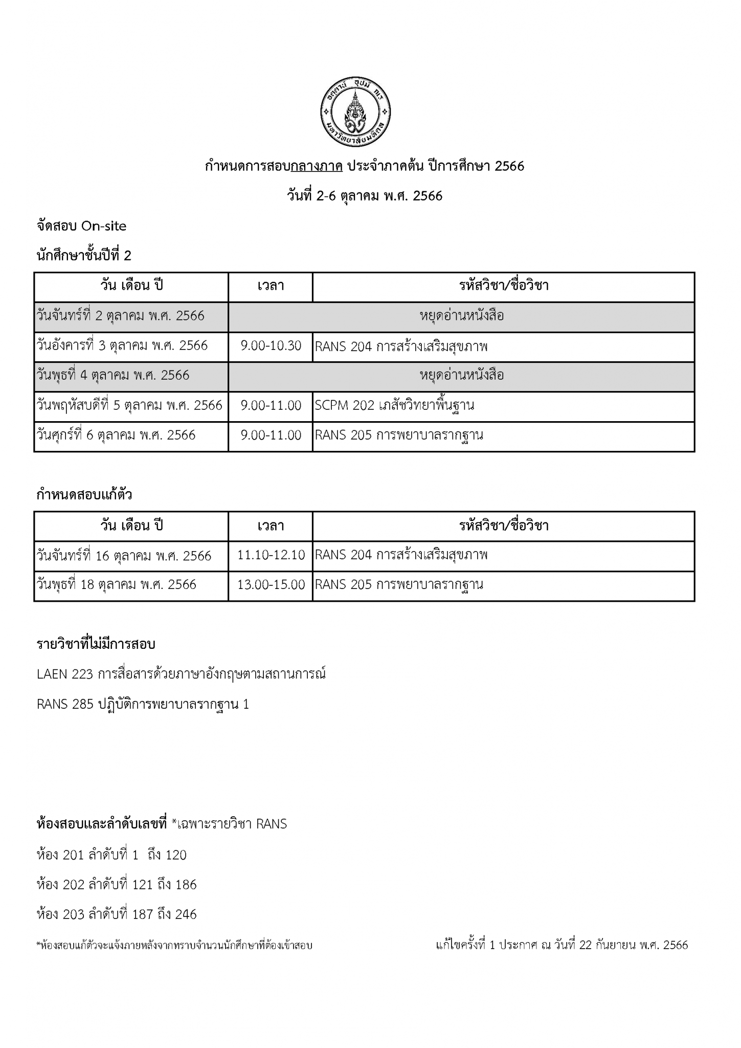 นักศึกษาชั้นปีที่ 2 (สอบกลางภาค)