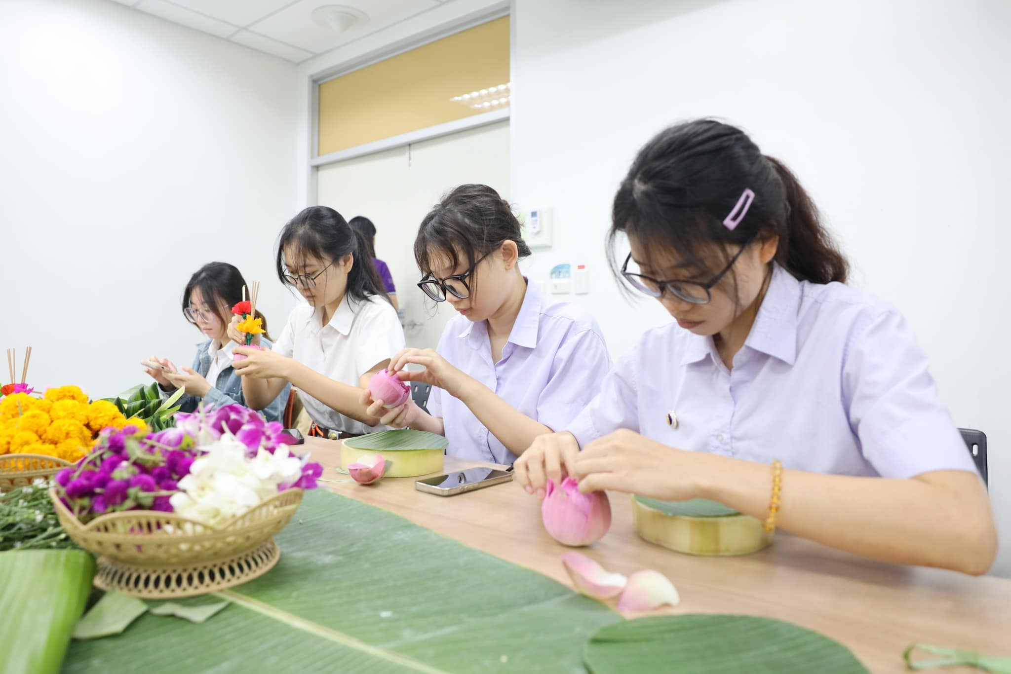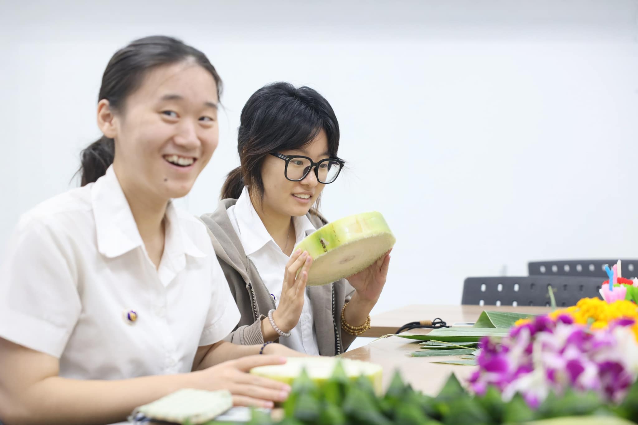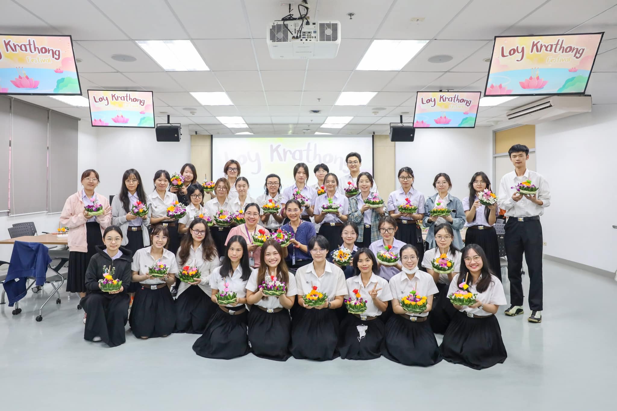 วันที่ 15 พฤศจิกายน 2567 หน่วยกิจการนักศึกษา โรงเรียนพยาบาลรามาธิบดี คณะแพทยศาสตร์โรงพยาบาลรามาธิบดี มหาวิทยาลัยมหิดล นำโดย ผู้ช่วยศาสตราจารย์ ดร.องุ่น น้อยอุดม ผู้ช่วยผู้อำนวยการโรงเรียนพยาบาลรามาธิบดี ด้านกิจการนักศึกษา และ อาจารย์ ดร. นันทิยา เอกอธิคมกิจ อาจารย์ประจำสาขาวิชาการพยาบาลจิตเวชและสุขภาพจิต จัดกิจกรรมทำกระทง “Loy Kratong Festival” เนื่องในวันลอยกระทง ประจำปี 2567 ให้แก่ นักศึกษาพยาบาลรามาธิบดี ชั้นปีที่ 3 หลักสูตรพยาบาลศาสตรบัณฑิต (นานาชาติ) จำนวน 22 คน โดยมีนักศึกษาพยาบาลรามาธิบดี ชั้นปีที่ 4 หลักสูตรพยาบาลศาสตรบัณฑิต (หลักสูตรไทย) เข้าร่วมทำกิจกรรมในครั้งนี้ โดยมีวัตถุประสงค์เพื่อให้นักศึกษาหลักสูตรนานาชาติได้มีโอกาสเรียนรู้ประเพณีและศิลปวัฒนธรรมไทย บรรยากาศภายในงานเต็มไปด้วยความสุข และความสนุกสนาน