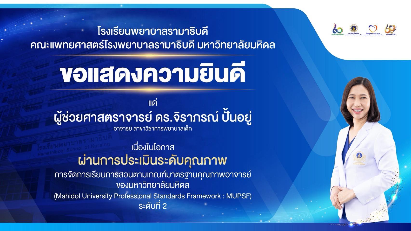 เนื่องในโอกาสที่ ผ่านการประเมินระดับคุณภาพการจัดการเรียนการสอนตามเกณฑ์มาตรฐานคุณภาพอาจารย์ของมหาวิทยาลัยมหิดล (Mahidol University Professional Standards Framework : MUPSF) ระดับที่ 2