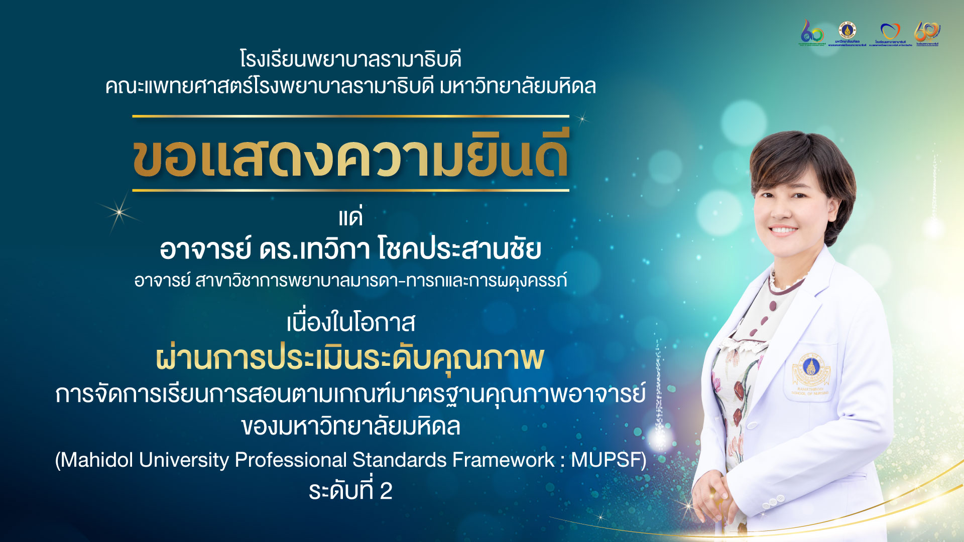เนื่องในโอกาสที่ ผ่านการประเมินระดับคุณภาพการจัดการเรียนการสอนตามเกณฑ์มาตรฐานคุณภาพอาจารย์ของมหาวิทยาลัยมหิดล (Mahidol University Professional Standards Framework : MUPSF) ระดับที่ 2