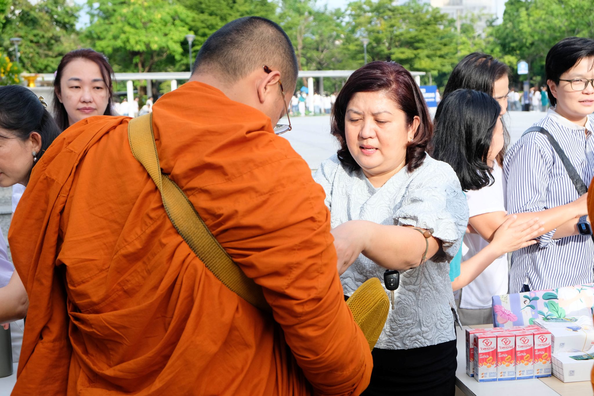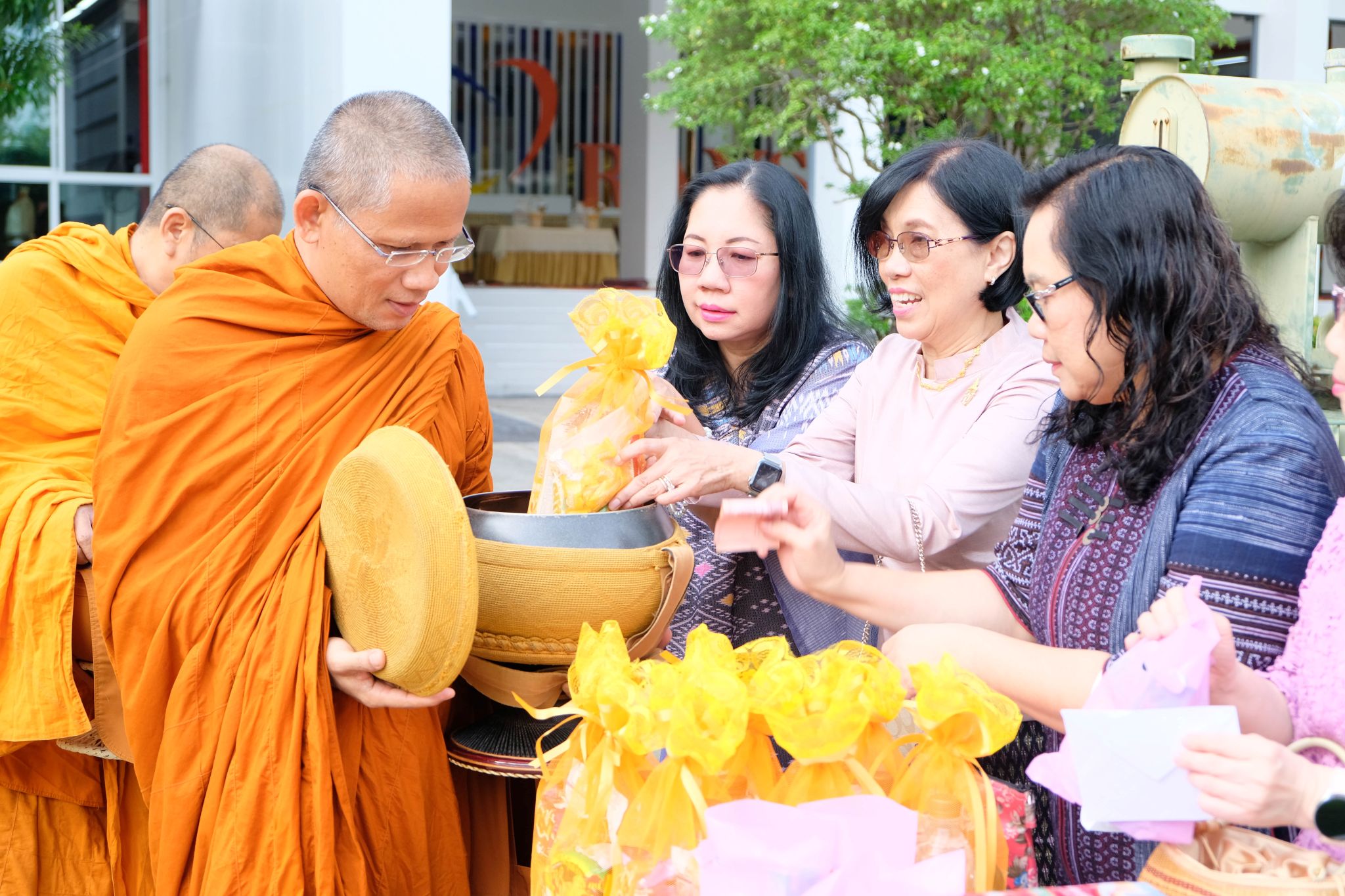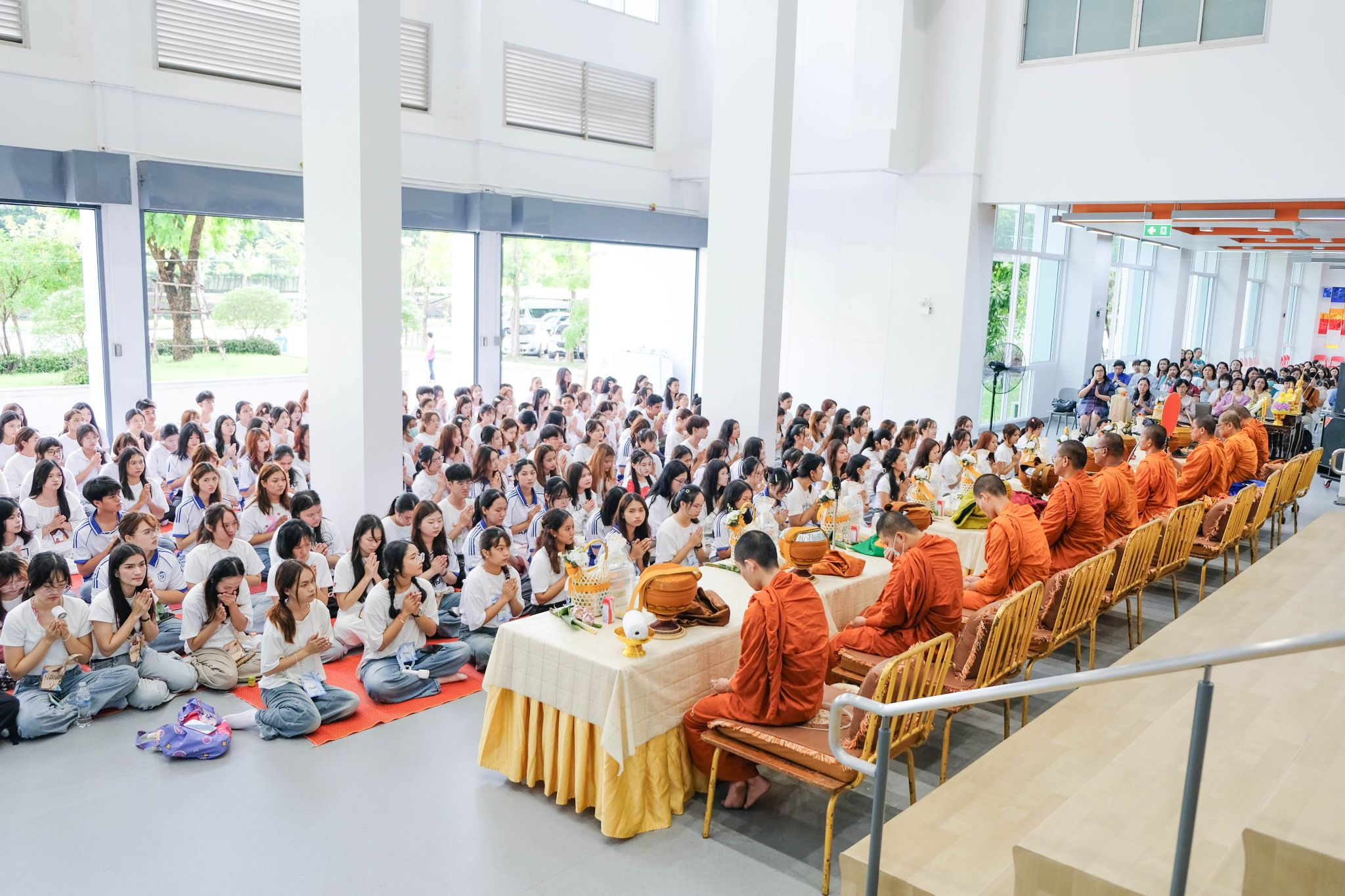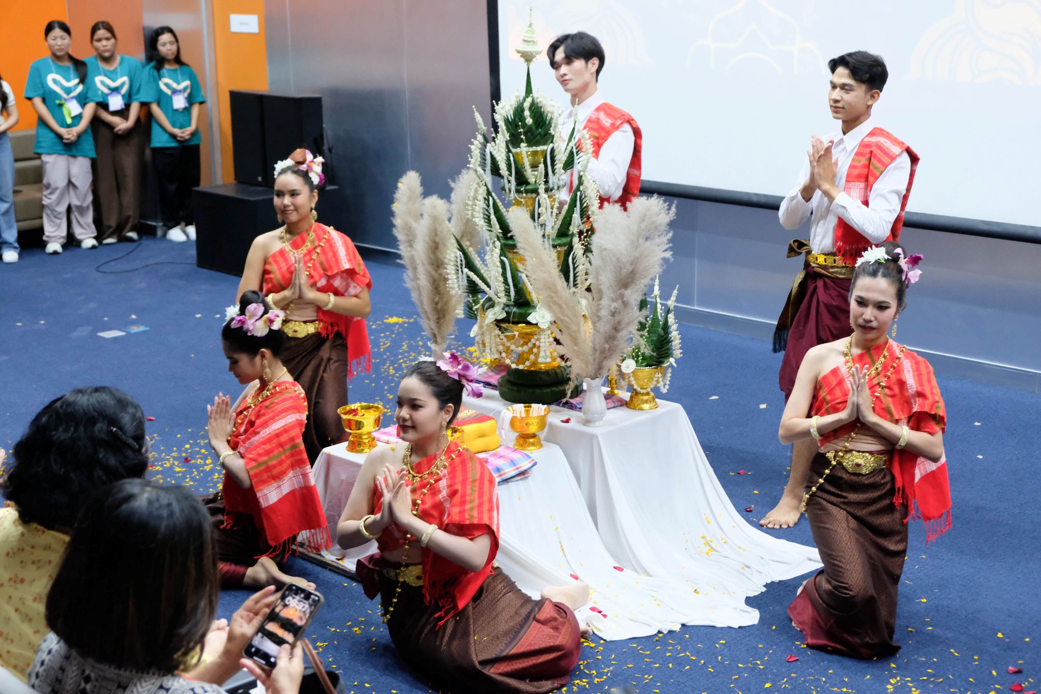 วันที่ 23 สิงหาคม 2568 โรงเรียนพยาบาลรามาธิบดี คณะแพทยศาสตร์โรงพยาบาลรามาธิบดี มหาวิทยาลัยมหิดล จัดกิจกรรม “สานสามัคคีน้องพี่พยาบาลรามาธิบดี” ประจำปี 2568 โดยมีพิธีทำบุญตักบาตรพระสงฆ์ จำนวน 9 รูป และทำบุญเลี้ยงพระในช่วงเช้า จากนั้นเป็นกิจกรรมสานสามัคคี โดยมี รองศาสตราจารย์ ดร.พูลสุข เจนพานิชย์ วิสุทธิพันธ์ ผู้อำนวยการโรงเรียนพยาบาลรามาธิบดี ให้เกียรติกล่าวเปิดงาน พร้อมด้วยคณาจารย์ของโรงเรียนพยาบาลรามาธิบดีทำพิธีผูกข้อมือรับขวัญนักศึกษาใหม่ ภายในงานยังมีการแสดงรำบายศรีสู่ขวัญ การถ่ายภาพหมู่ร่วมกัน กิจกรรมสร้างสายสัมพันธ์ระหว่างนักศึกษาชั้นปีที่ 1-4 เช่น กีฬาสัมพันธ์ กิจกรรมสานสัมพันธ์ร้อยใจเป็นหนึ่ง และกิจกรรมพบสายรหัส ซึ่งล้วนสะท้อนถึงความอบอุ่นและความเป็นครอบครัวรามาธิบดี โดยนางสาวพิชญาภัค บุญเจริญ นักศึกษาพยาบาลชั้นปีที่ 2 ประธานโครงการ กล่าวรายงานและวัตถุประสงค์ของการจัดกิจกรรมเพื่อสร้างความผูกพันระหว่างรุ่นพี่และรุ่นน้อง อีกทั้งยังเป็นการเปิดโอกาสให้นักศึกษาได้เรียนรู้และพัฒนาทักษะการทำงานเป็นทีม รวมถึงภาวะผู้นำที่สำคัญต่อการประกอบวิชาชีพพยาบาลในอนาคต