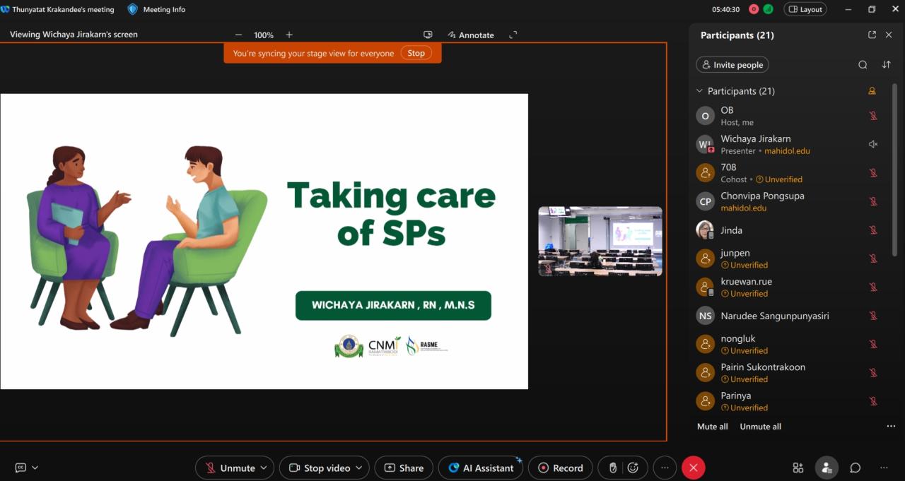 วันที่ 3 กรกฎาคม 2567 ผู้ช่วยศาสตราจารย์ ดร.สุมลชาติ ดวงบุบผา รองผู้อำนวยการฯ ฝ่ายสนับสนุนการเรียนรู้และพัฒนาวิชาชีพการพยาบาล โรงเรียนพยาบาลรามาธิบดี คณะแพทยศาสตร์โรงพยาบาลรามาธิบดี มหาวิทยาลัยมหิดล ให้เกียรติเป็นประธานกล่าวเปิดการอบรมเชิงปฏิบัติการ เรื่อง “การประยุกต์ใช้ผู้ป่วยจำลองในการเรียนการสอนทางคลินิก” พร้อมด้วย อาจารย์ นายแพทย์ณัฐดนัย มั่นเกษตรกิจ ผู้ช่วยคณบดีฝ่ายการศึกษาโรงเรียนแพทย์รามาธิบดี ผู้ช่วยศาสตราจารย์ แพทย์หญิงณัฐสินี อธิมาถรัตพงศ์ ภาควิชาเวชศาสตร์ฉุกเฉิน คณะแพทยศาสตร์โรงพยาบาลรามาธิบดี พยาบาลวิชาชีพ วิชญา จิระกาล ฝ่ายบริหารทรัพยากรและสิ่งแวดล้อมการเรียนรู้สถาบันการแพทย์จักรีนฤบดินทร์ คุณพรศักดิ์ บัวระพา และคุณอัจจิมา หนูหล่า งานทรัพยากรการเรียนรู้ คณะแพทยศาสตร์โรงพยาบาลรามาธิบดี ร่วมเป็นวิทยากรบรรยาย โดยมี คณาจารย์จากโรงเรียนพยาบาลรามาธิบดี เข้าร่วมการอบรมในครั้งนี้ ทั้งนี้ มีวัตถุประสงค์เพื่อพัฒนาความรู้ความเข้าใจเกี่ยวกับการใช้ผู้ป่วยจำลองในการจัดการเรียนการสอนทางคลินิก ณ ห้อง 708AB ชั้น 7 อาคารเรียนและปฏิบัติการรวมด้านการแพทย์และโรงเรียนพยาบาลรามาธิบดี