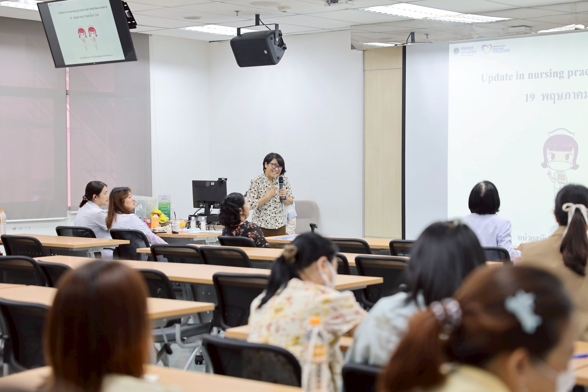 วันที่ 19 พฤษภาคม 2568 รองศาสตราจารย์ ดร.พูลสุข เจนพานิชย์ วิสุทธิพันธ์ ผู้อำนวยการโรงเรียนพยาบาลรามาธิบดี คณะแพทยศาสตร์โรงพยาบาลรามาธิบดี มหาวิทยาลัยมหิดล เป็นประธานเปิดโครงการ ”Update in nursing practice for infection control“ โดยได้รับเกียรติจาก พว. ถนอมวงศ์ มัณฑจิตร์ บรรยายหัวข้อ ”Antiseptics and disinfectants in Ramathibodi hospital“ พว. ทิพากร พรมี บรรยายหัวข้อ ”BSI/CLABSI prevention in clinical setting“ และพว. สุมาวดี สกุนตนิยม บรรยายหัวข้อ ”Current issues in hand hygiene“ ทั้งนี้ มีคณาจารย์ โรงเรียนพยาบาลรามาธิบดี เข้าร่วมโครงการฯ ในครั้งนี้ จากนั้น เป็นกิจกรรม Workshop: Refresh nursing skill for infection control โดยมี ผู้ช่วยศาสตราจารย์ ดร.เบญจพร จึงเกรียงไกร หัวหน้าสาขาวิชาการพยาบาลพื้นฐาน และอาจารย์ ดร.อภรชา ลำดับวงศ์ อาจารย์สาขาวิชาการพยาบาลพื้นฐาน ให้เกียรติเป็นวิทยากร ณ ห้อง 714 ชั้น 7 อาคารเรียนและปฏิบัติการรวมด้านการแพทย์และโรงเรียนพยาบาลรามาธิบดี