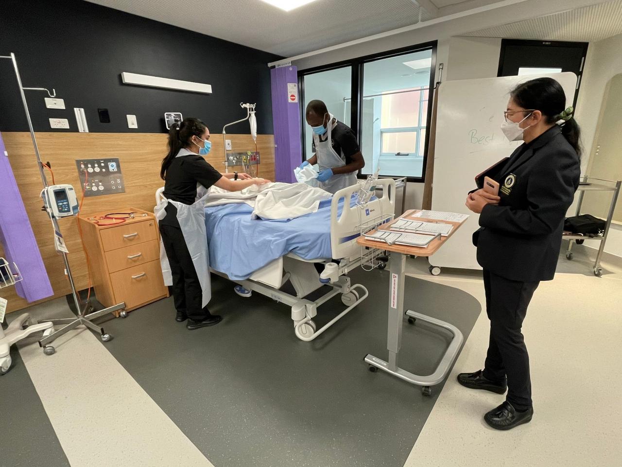 โดย Dr. Stephan Bouchoucha, Associate Head of School, International ให้การต้อนรับพร้อมนำเยี่ยมชม Clinical simulation center ประกอบด้วย ห้อง simulation ต่าง ๆ พาเข้าร่วมสังเกตการประเมินทักษะการทำหัตถการและ feedback โดยใช้ peer assessment มีการบรรยายเรื่อง teaching and learning design โดย Dr. Susie Macfarlane, Associate director, Learning Innovation (Health) บรรยายเรื่อง Teaching and Learning activities โดย Ms Chantelle Dowling, Lecturer บรรยายเรื่อง วิธีและเครื่องมือการประเมินทักษะหัตถการของนักศึกษาโดย Mrs Claive Crossfield, Lecturer