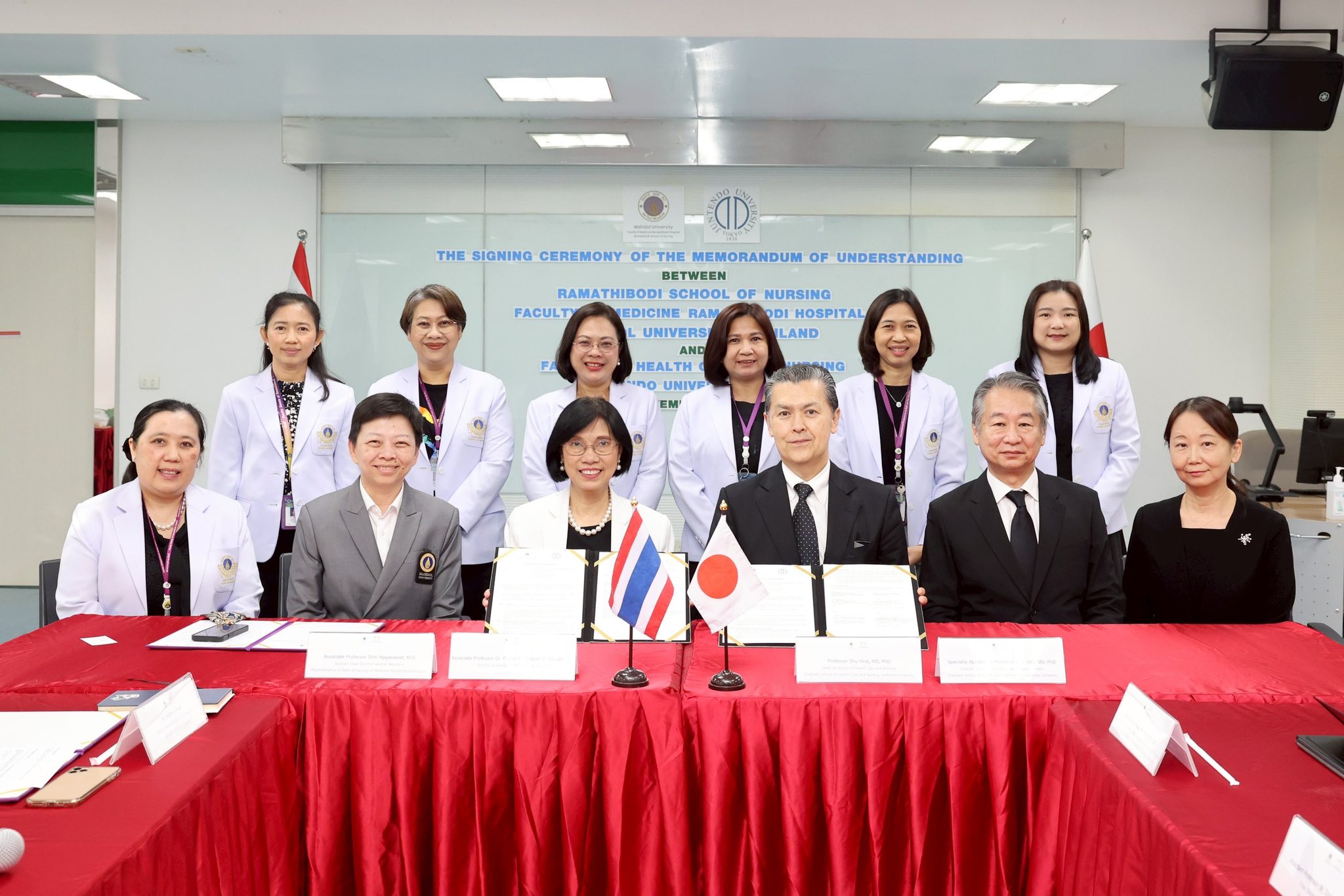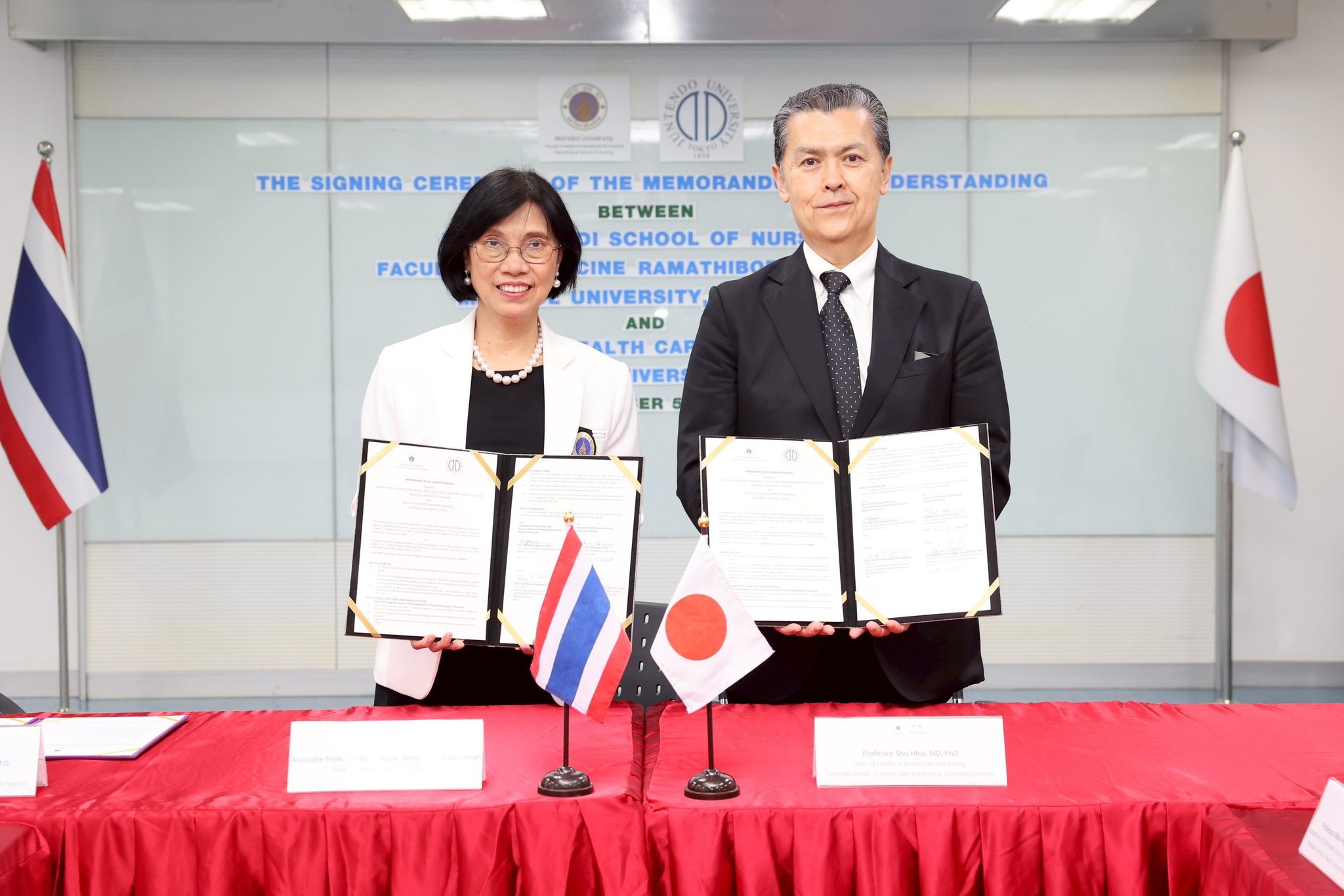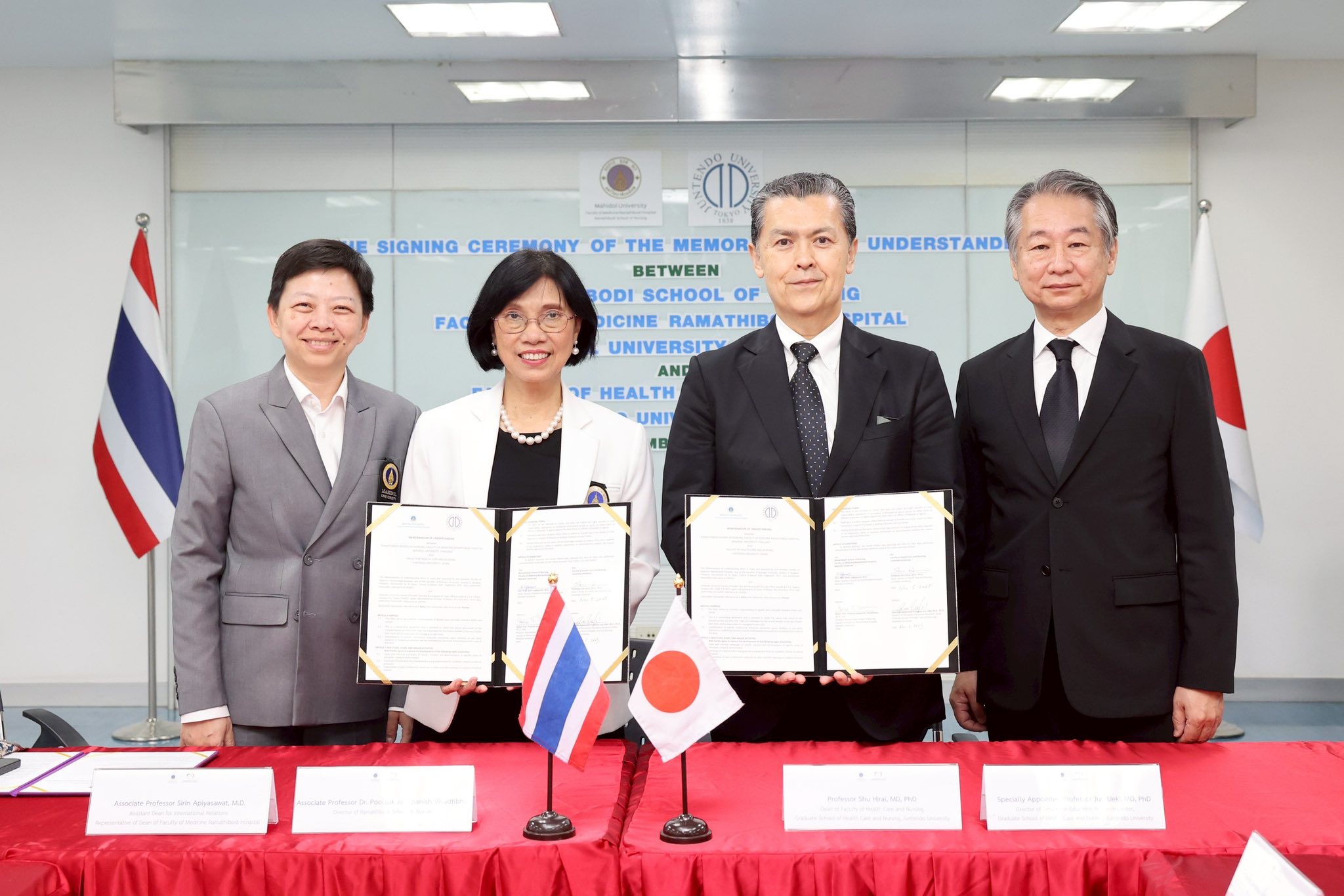 พิธีลงนามบันทึกข้อตกลงความร่วมมือทางวิชาการ (MOU) ระหว่าง โรงเรียนพยาบาลรามาธิบดี คณะแพทยศาสตร์โรงพยาบาลรามาธิบดี มหาวิทยาลัยมหิดล กับ Faculty of Health Care and Nursing, Juntendo University ประเทศญี่ปุ่น