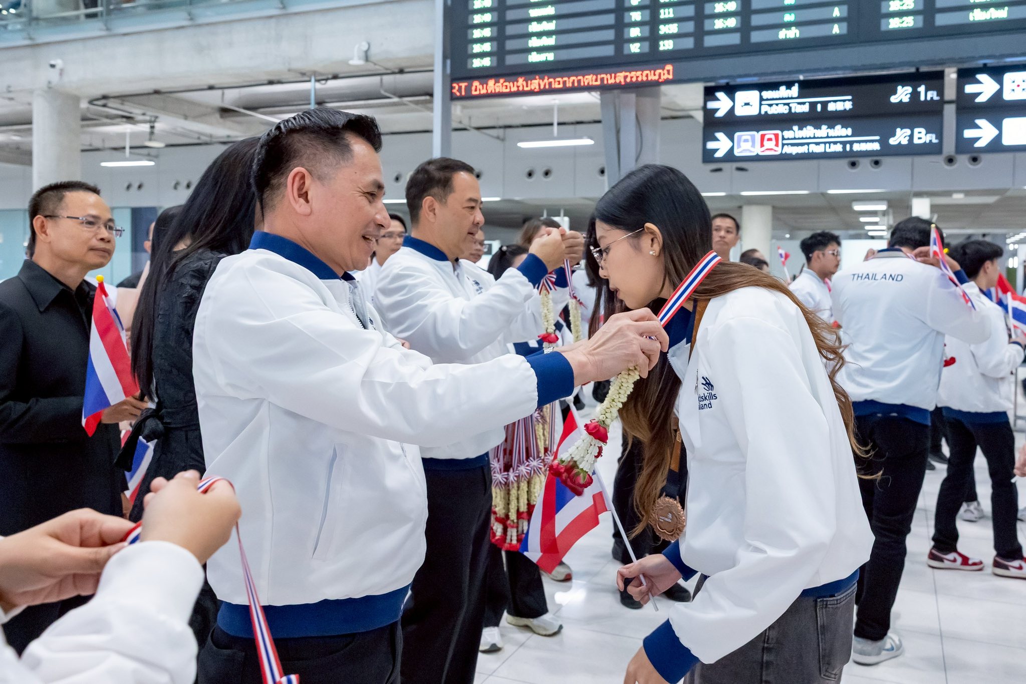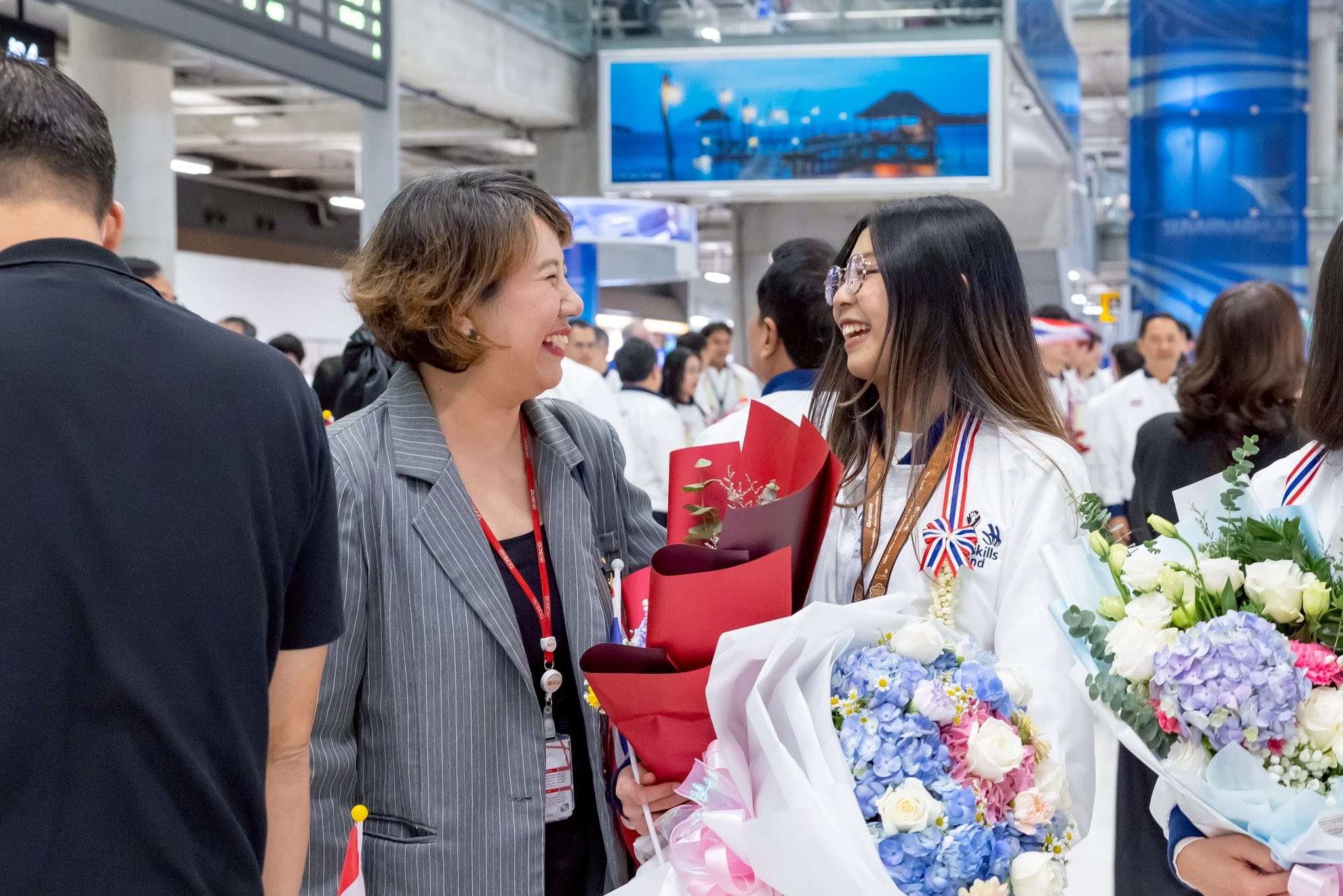 วันที่ 1 ธันวาคม 2568 อาจารย์ ดร.จิราพร ไลนิงเกอร์ รองผู้อำนวยการโรงเรียนพยาบาลรามาธิบดี ฝ่ายวิเทศสัมพันธ์และหัวหน้าโครงการฯ พร้อมด้วย รองศาสตราจารย์ ดร.กมลรัตน์ กิตติพิมพานนท์ ผู้ช่วยผู้อำนวยการโรงเรียนพยาบาลรามาธิบดี ด้านนโยบายและแผน รองศาสตราจารย์ ดร.พัชรินทร์ นินทจันทร์ หัวหน้าสาขาวิชาการพยาบาลจิตเวชและสุขภาพจิต คณะผู้บริหาร และคณาจารย์ โรงเรียนพยาบาลรามาธิบดี ร่วมต้อนรับ อาจารย์ ดร.รัชนก พลเยี่ยม Worldskills Expert และอาจารย์ สาขาวิชาการพยาบาลสุขภาพชุมชน และ “น้องทอฝัน” นางสาวชญานิศวร์ ศรีสวัสดิ์เพ็ญ นักศึกษาพยาบาลรามาธิบดี ชั้นปีที่ 3 ตัวแทนเยาวชนไทย ผู้เข้าแข่งขันในสาขาการดูเเลผู้สูงอายุเเละผู้ป่วย (Health and Social Care) โรงเรียนพยาบาลรามาธิบดี คณะแพทยศาสตร์โรงพยาบาลรามาธิบดี มหาวิทยาลัยมหิดล ในการเดินทางกลับถึงประเทศไทย ณ สนามบินนานาชาติสุวรรณภูมิ พร้อมร่วมแสดงความยินดีที่ได้รับรางวัล ”เหรียญทองแดง” (Bronze medal) จากการแข่งขัน “WorldSkills Asia Taipei 2025” ระหว่างวันที่ 27 – 29 พฤศจิกายน 2568 ณ ศูนย์นิทรรศการไทเปหนานกัง (TaiNEX) (Taipei Nangang Exhibition Center) เขตหนานกัง กรุงไทเป