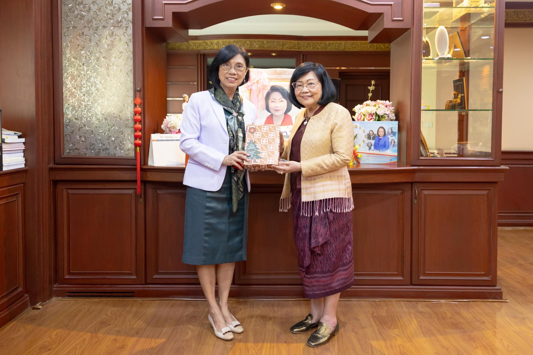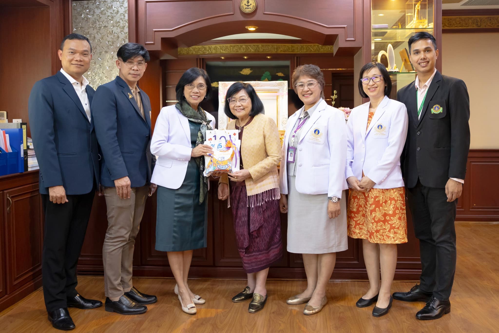 วันที่ 2 มกราคม 2568 รองศาสตราจารย์ ดร.พูลสุข เจนพานิชย์ วิสุทธิพันธ์ ผู้อำนวยการโรงเรียนพยาบาลรามาธิบดี พร้อมด้วย คณะผู้บริหาร และหัวหน้างาน โรงเรียนพยาบาลรามาธิบดี คณะแพทยศาสตร์โรงพยาบาลรามาธิบดี มหาวิทยาลัยมหิดล เข้าสวัสดีปีใหม่ พร้อมรับคำอวยพร จาก รองศาสตราจารย์ ดร.สุจิตรา เหลืองอมรเลิศ นายกสภาการพยาบาล พร้อมด้วย ดร.ราศรี ลีนะกุล เลขาธิการสภาการพยาบาล เนื่องในโอกาสวันขึ้นปีใหม่ 2568