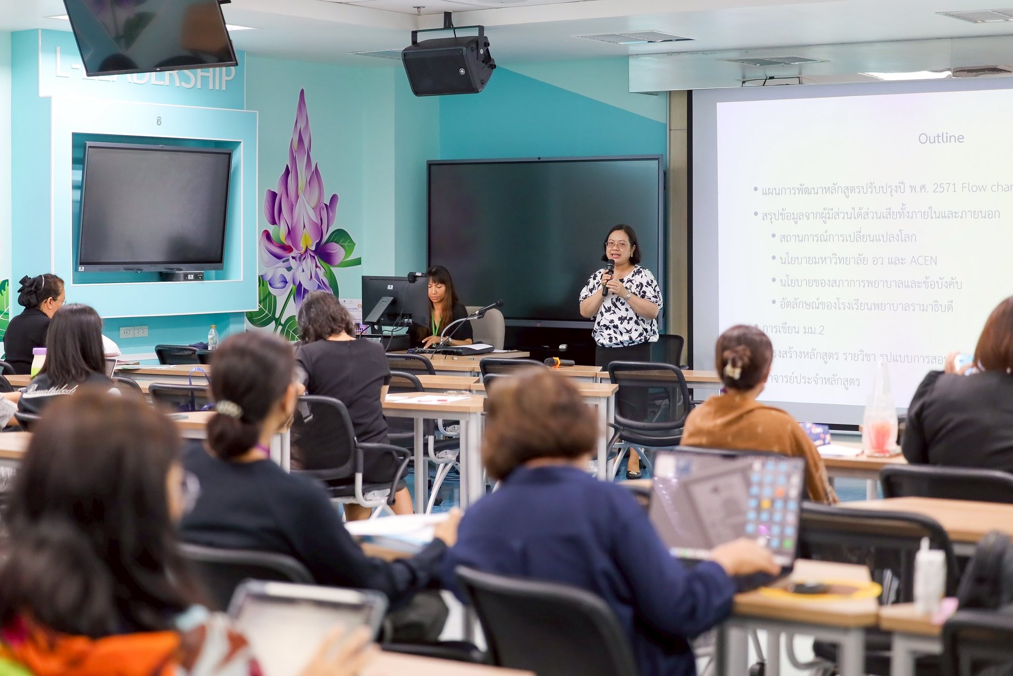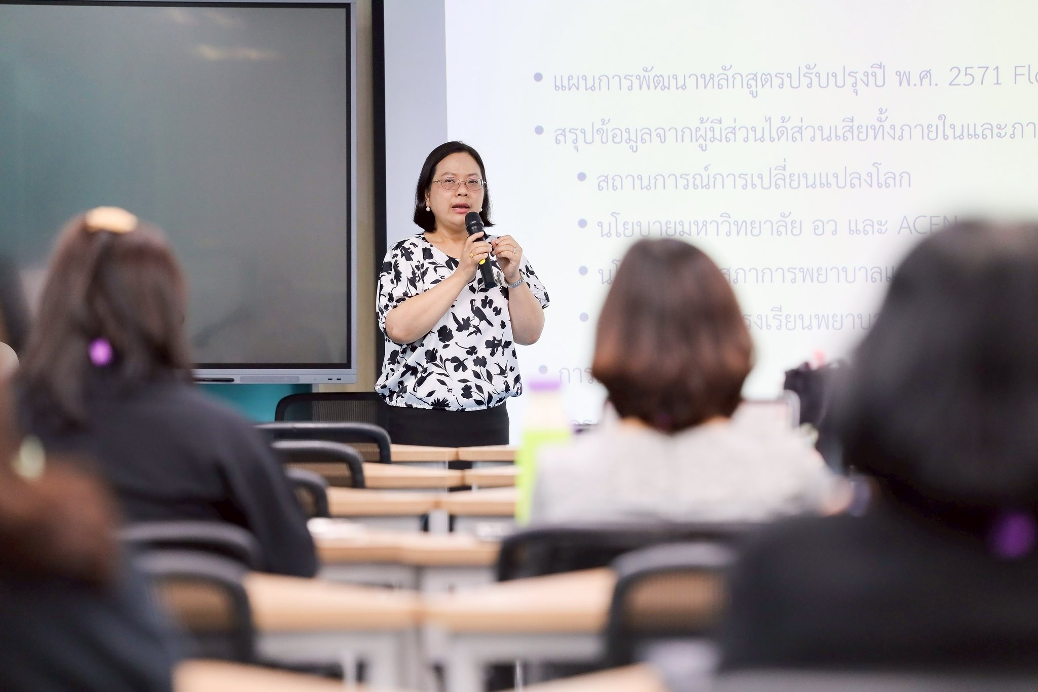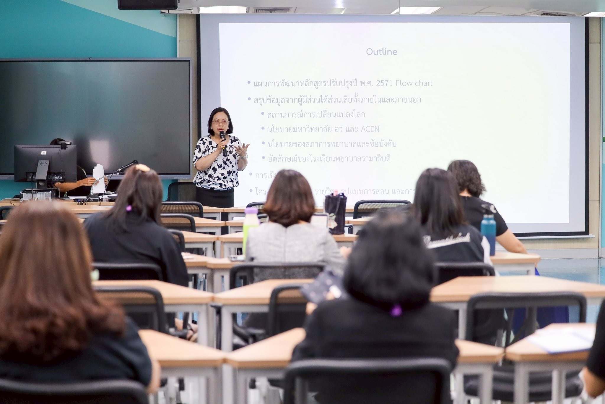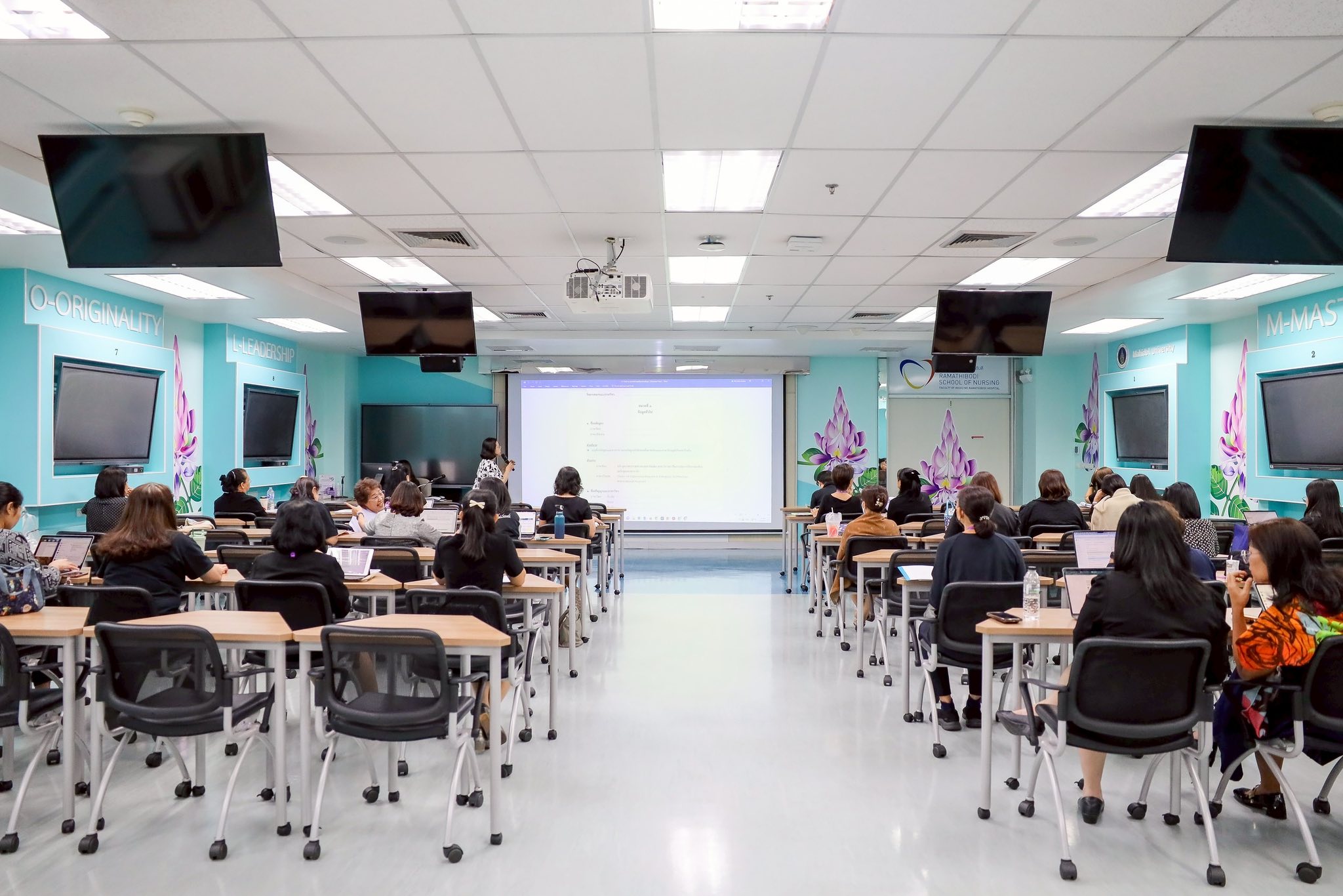 วันที่ 3 พฤศจิกายน 2568 หลักสูตรพยาบาลศาสตรมหาบัณฑิต โรงเรียนพยาบาลรามาธิบดี คณะแพทยศาสตร์โรงพยาบาลรามาธิบดี มหาวิทยาลัยมหิดล จัดการประชุม เรื่อง “การจัดทำหลักสูตรปรับปรุงหลักสูตร พ.ศ. 2571” โดย รองศาสตราจารย์ ดร.สุปรีดา มั่นคง รองผู้อำนวยการโรงเรียนพยาบาลรามาธิบดี ฝ่ายบัณฑิตศึกษา เป็นประธานกล่าวเปิดการประชุม พร้อมด้วย คณาจารย์จากบัณฑิตศึกษา กล่าวถึงการกำหนดโครงสร้างหลักสูตร และวิธีการจัดการเรียนการสอนของหลักสูตรปรับปรุง และคณาจารย์โรงเรียนพยาบาลรามาธิบดี เข้าร่วมประชุมในครั้งนี้