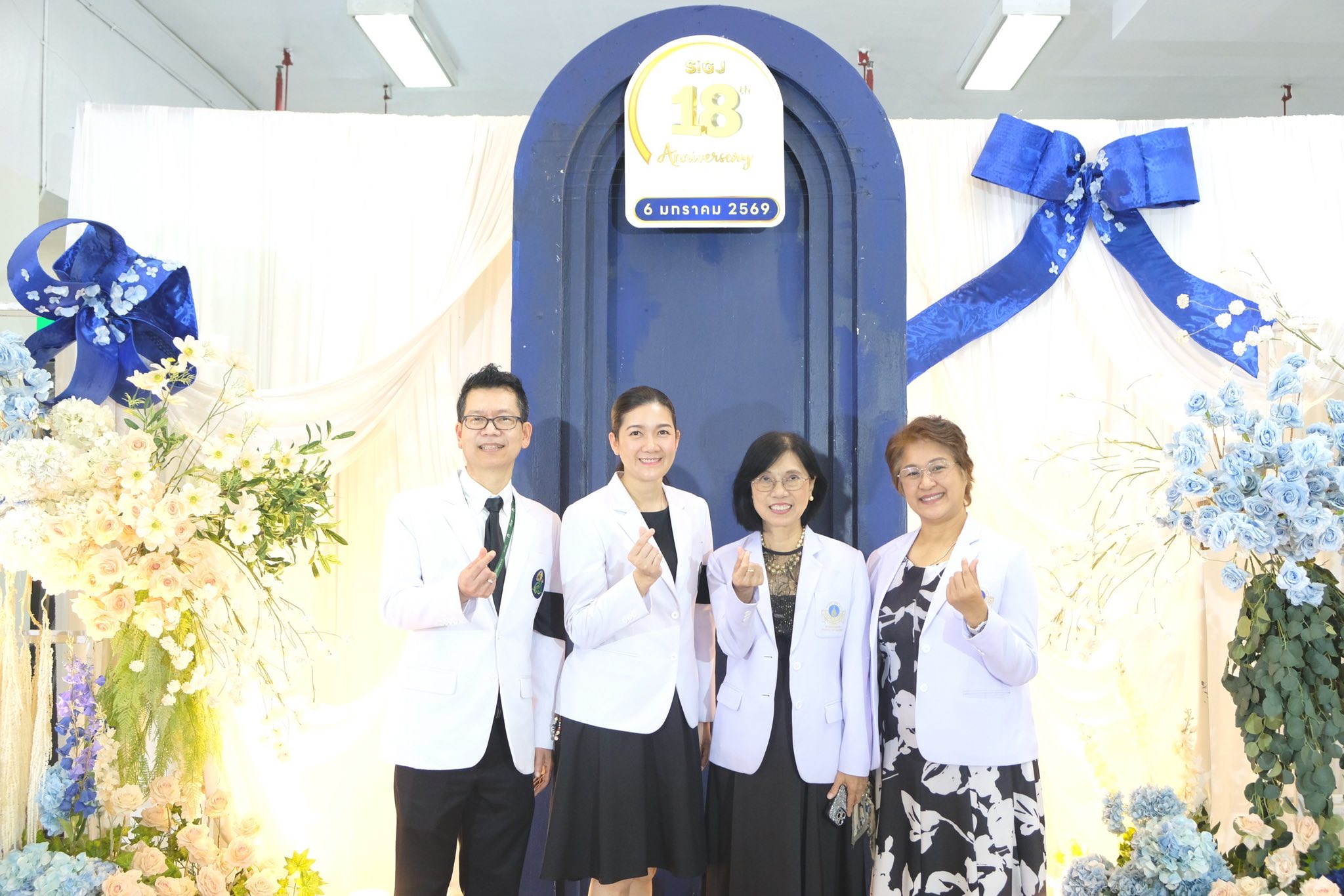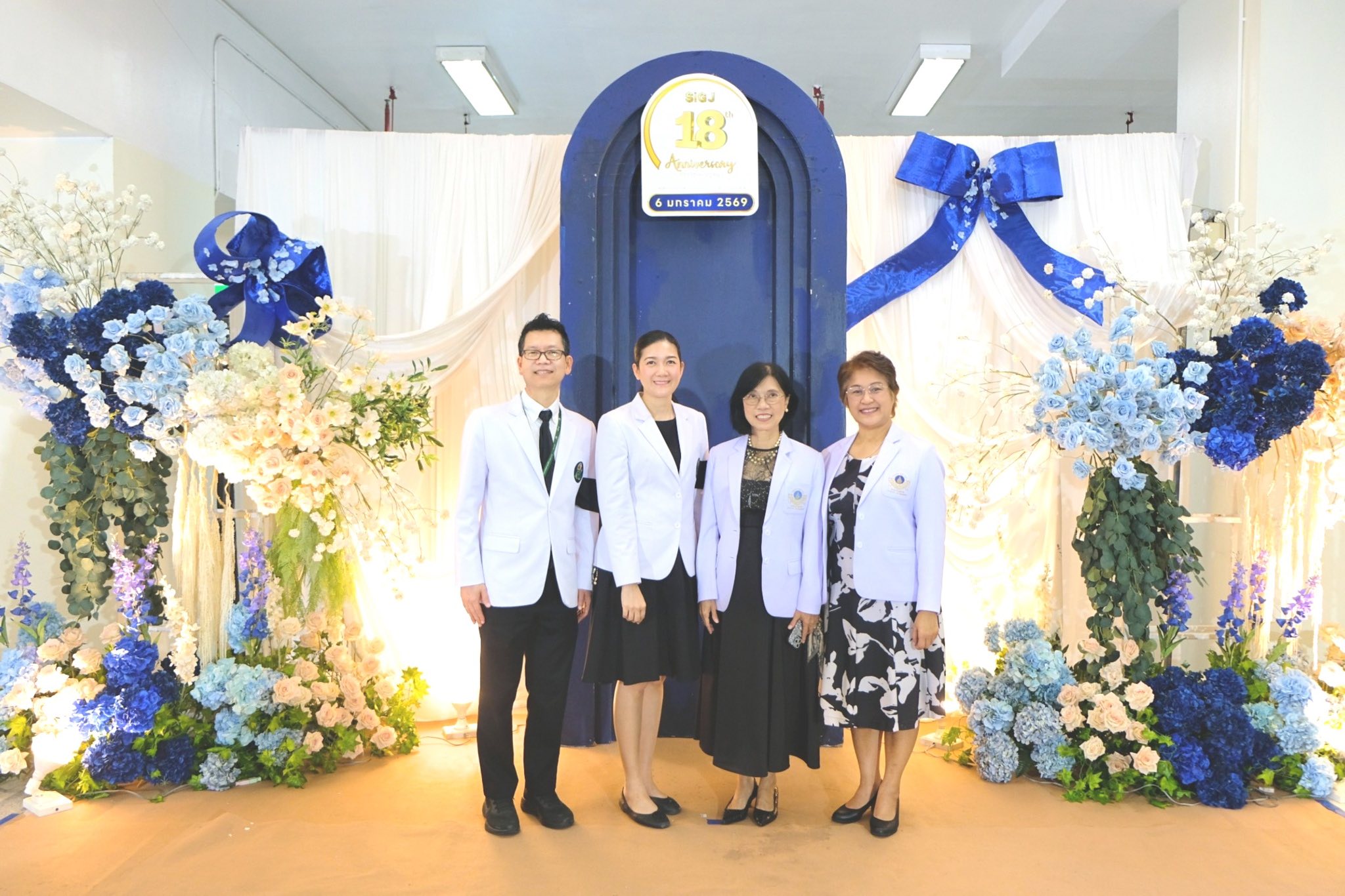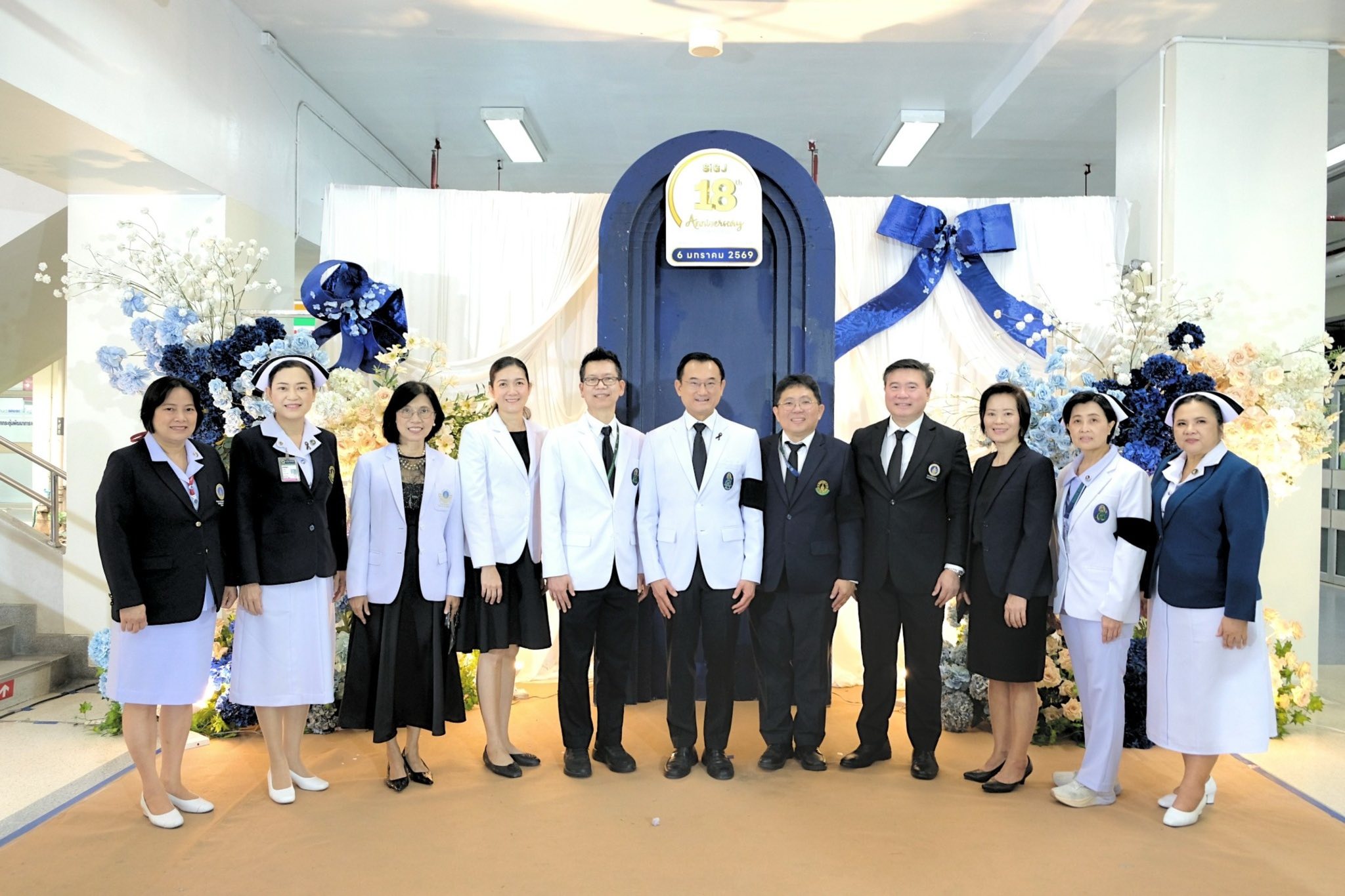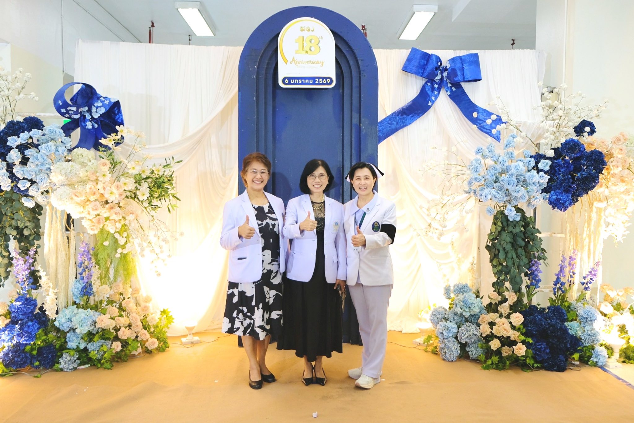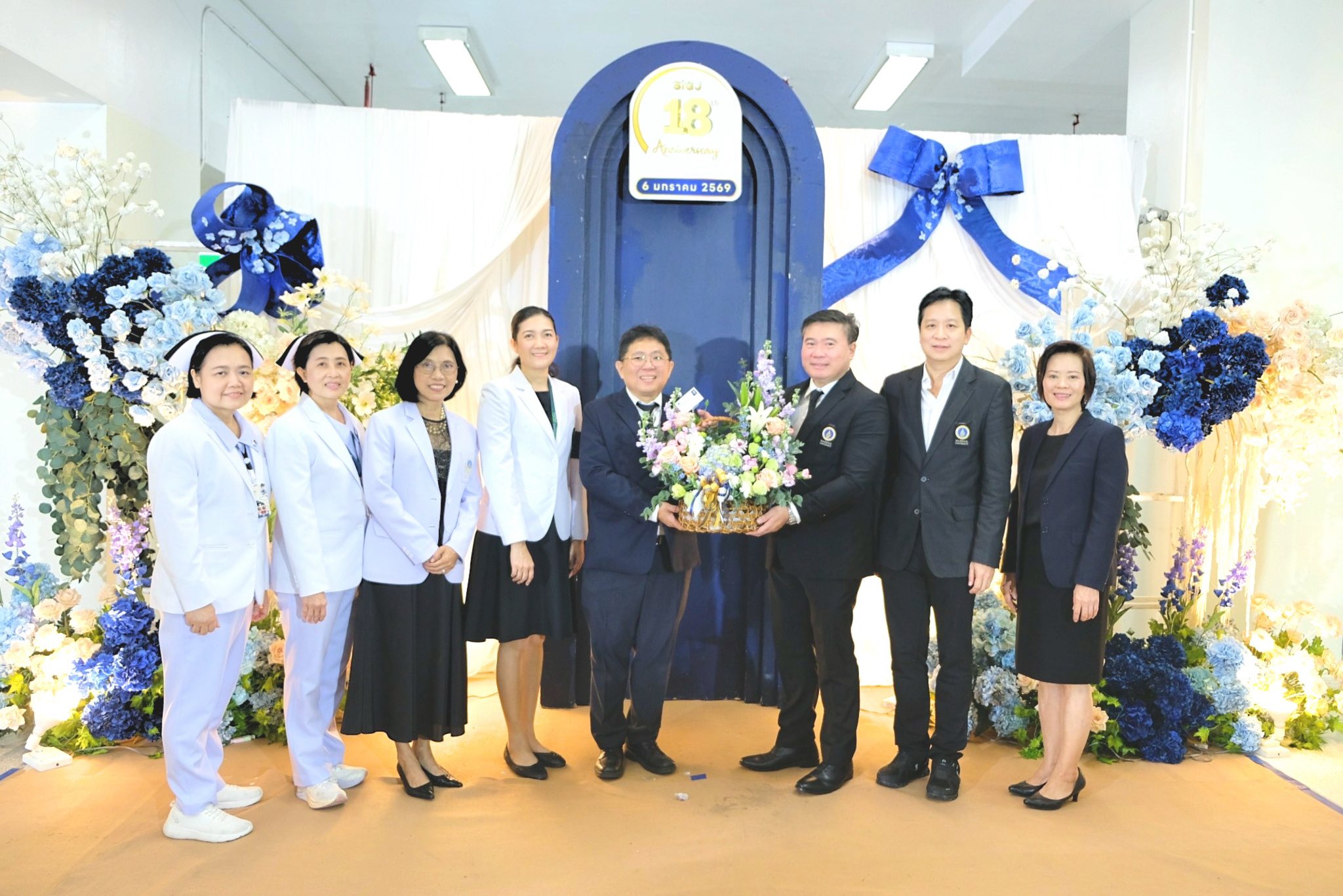 วันที่ 6 มกราคม 2569 รองศาสตราจารย์ ดร.พูลสุข เจนพานิชย์ วิสุทธิพันธ์ ผู้อำนวยการโรงเรียนพยาบาลรามาธิบดี พร้อมด้วยคณะผู้บริหาร คณาจารย์ และหัวหน้าฝ่ายบริหารโรงเรียนพยาบาลรามาธิบดี เดินทางเข้าร่วมมอบช่อดอกไม้เพื่อแสดงความยินดี เนื่องในโอกาส "ครบรอบ 18 ปี ศูนย์การแพทย์กาญจนาภิเษก คณะแพทยศาสตร์ศิริราชพยาบาล (ศิริราช-กาญจนา)"