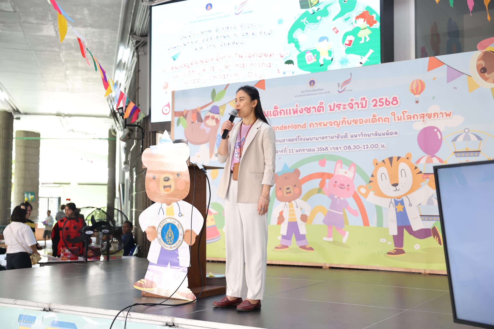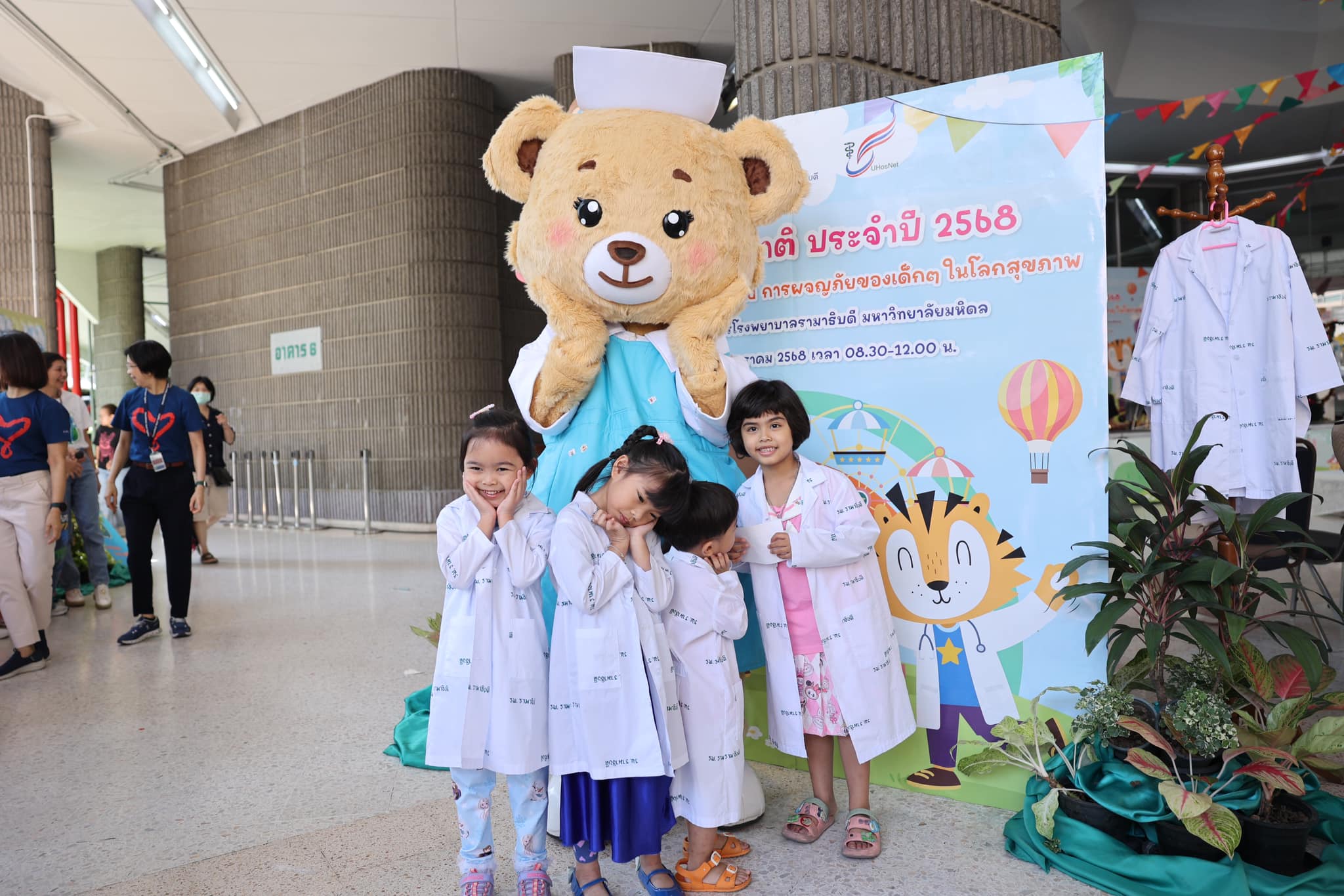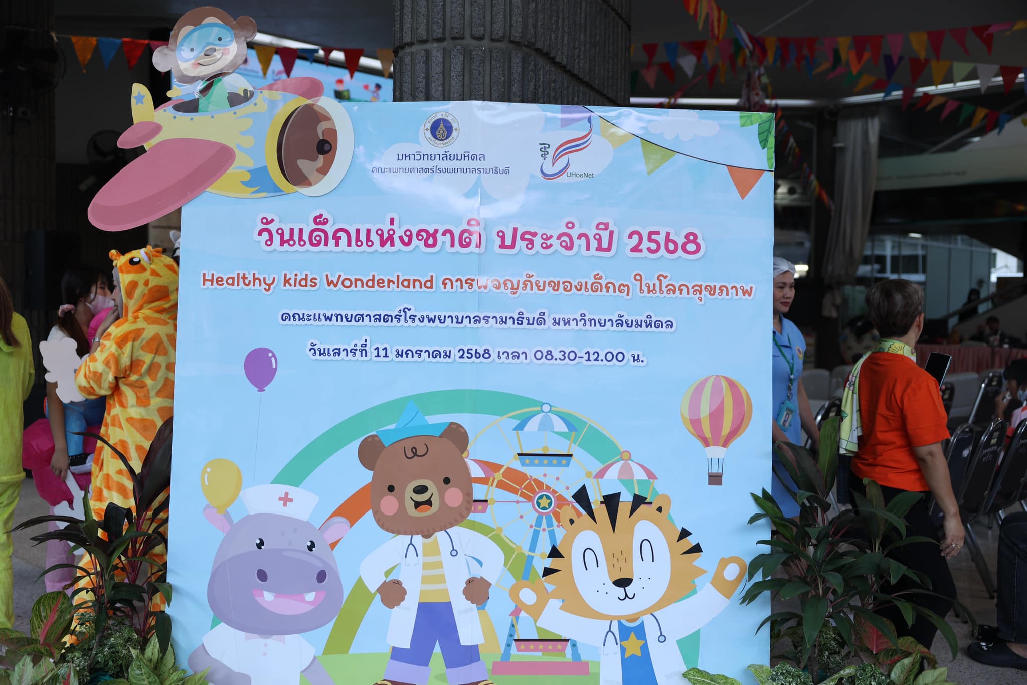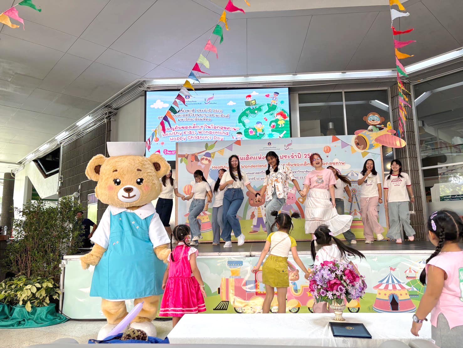 วันที่ 11 มกราคม 2568 ผู้ช่วยศาสตราจารย์ ดร.สุพรรณา ครองแถว ผู้ช่วยผู้อำนวยการโรงเรียนพยาบาลรามาธิบดี ด้านเทคโนโลยีดิจิทัลและสารสนเทศ พร้อมด้วย อาจารย์ ดร.ปิยวดี ทองยศ ผู้ช่วยผู้อำนวยการโรงเรียนพยาบาลรามาธิบดี ด้านสื่อสารองค์กร ผู้ช่วยศาสตราจารย์ ดร.ดวงฤทัย บัวด้วง หัวหน้าสาขาวิชาการพยาบาลเด็ก นำทีม คณาจารย์ สาขาวิชาการพยาบาลเด็ก และนักศึกษาพยาบาลรามาธิบดี ชั้นปีที่ 1 - 3 โรงเรียนพยาบาลรามาธิบดี คณะแพทยศาสตร์โรงพยาบาลรามาธิบดี มหาวิทยาลัยมหิดล เข้าร่วมจัดกิจกรรมวันเด็กแห่งชาติ ประจำปี 2568