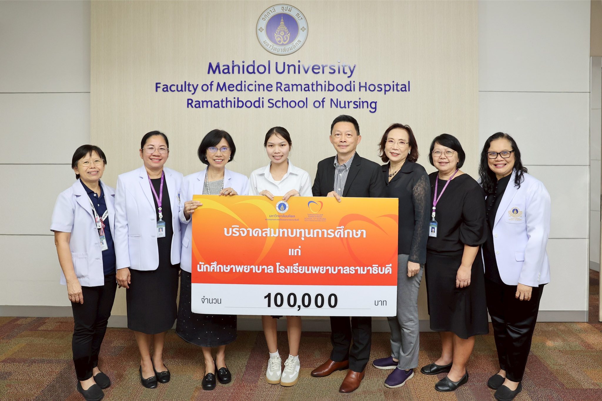 มอบเงินบริจาคสมทบทุนการศึกษา แก่ นักศึกษาพยาบาลรามาธิบดี ชั้นปีที่ 3 หลักสูตรพยาบาลศาสตรบัณฑิต โรงเรียนพยาบาลรามาธิบดี