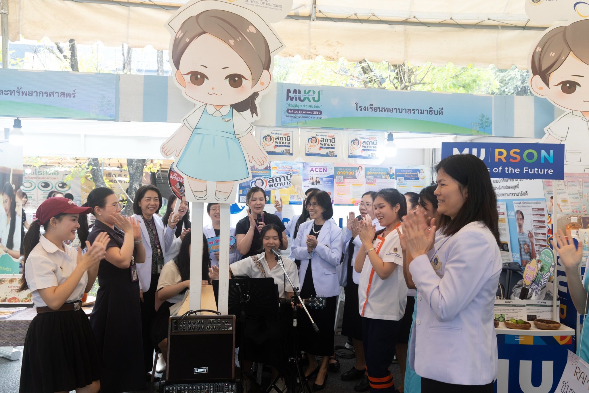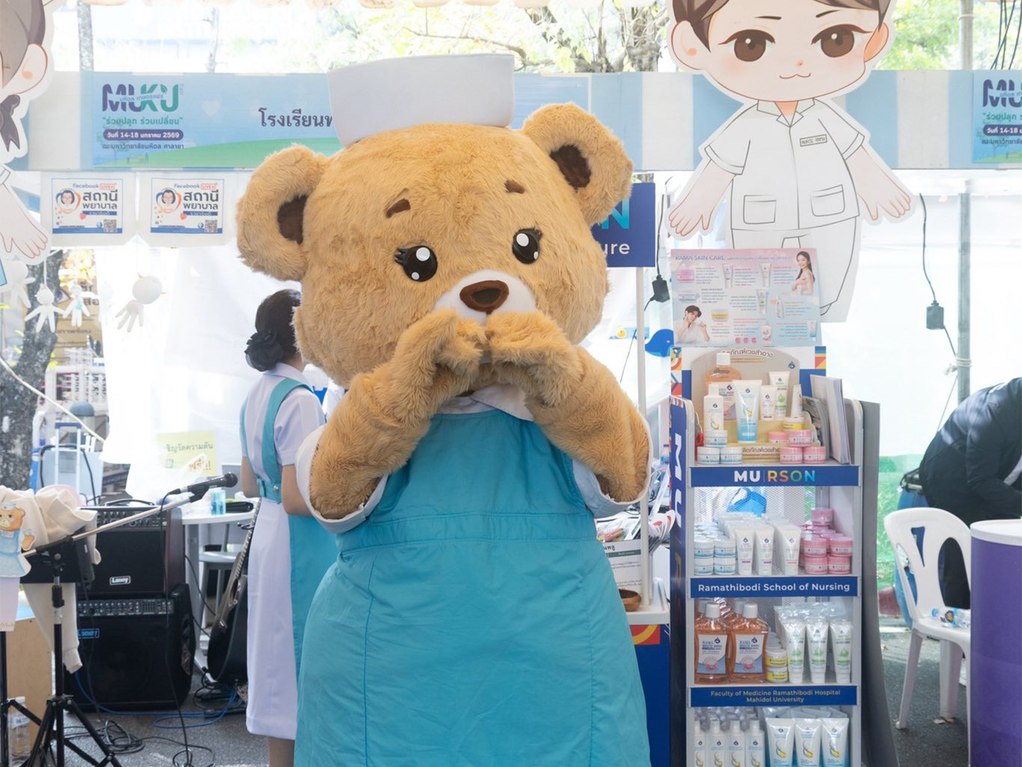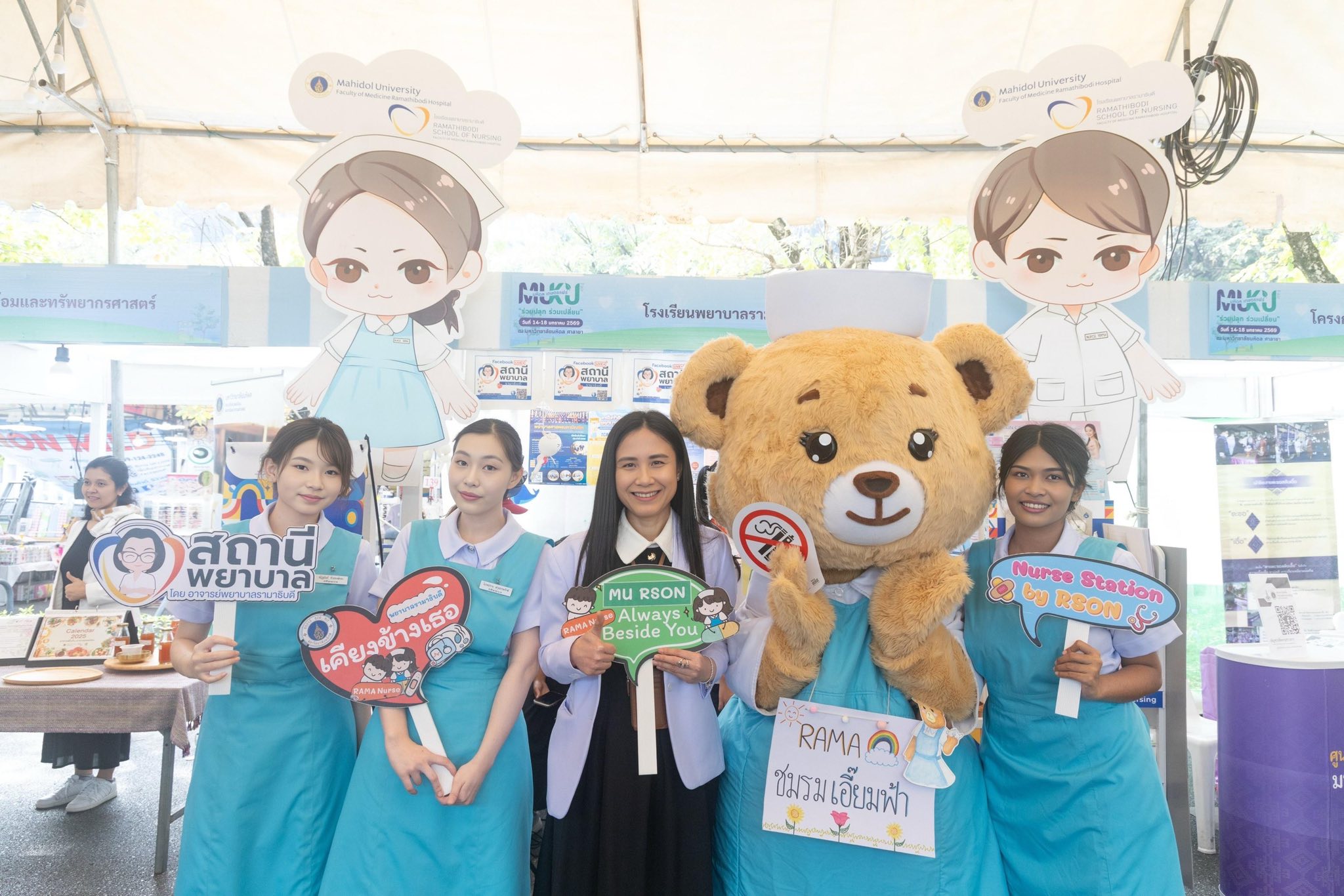 โดยมี อาจารย์ ดร.ศิริพร นิราพันธ์ อาจารย์ สาขาวิชาการพยาบาลเด็ก นำทีมนักศึกษาพยาบาลรามาธิบดี ชั้นปีที่ 1-2 ชมรมนักศึกษาพยาบาลรามาธิบดีสร้างสังคมปลอดบุหรี่ ชมรมเอี๊ยมฟ้าอาสารามาสัมพันธ์ ชมรมดนตรี และบุคลากรโรงเรียนพยาบาลรามาธิบดี ร่วมออกบูธให้คำแนะนำเกี่ยวกับหลักสูตรต่าง ๆ ข้อมูล TCAS69 เกณฑ์การรับสมัครเข้าศึกษาต่อโรงเรียนพยาบาลรามาธิบดี รวมทั้งจัดกิจกรรมเพื่อสุขภาพ ตรวจวัดความดัน จำหน่ายผลิตภัณฑ์และหนังสือความรู้สุขภาพ และกิจกรรมการแสดงดนตรีสดจากนักศึกษาพยาบาลรามาธิบดี